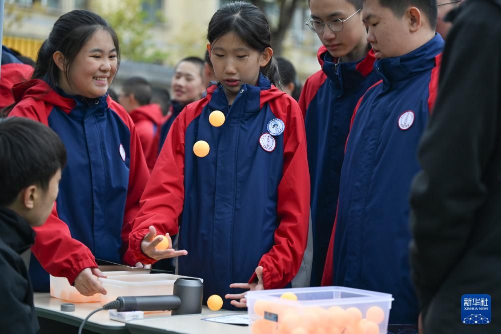 10月14日,新疆生产建设兵团第一中学学生在科技节上体验科学实验。