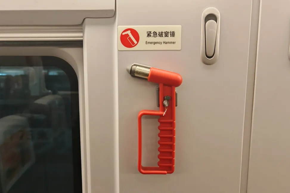 紧急破窗锤:一旦发生火灾等紧急事故,可用破窗锤的尖部敲击破窗位置,非紧急情况下切莫触碰。