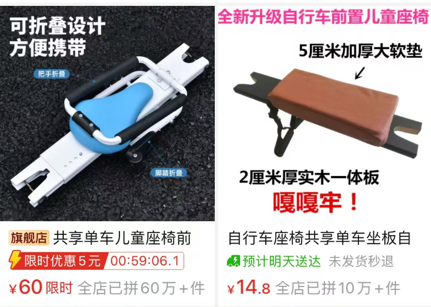 警方提醒:所谓的共享单车儿童座椅存在不小的安全隐患家长不应购买和使用!