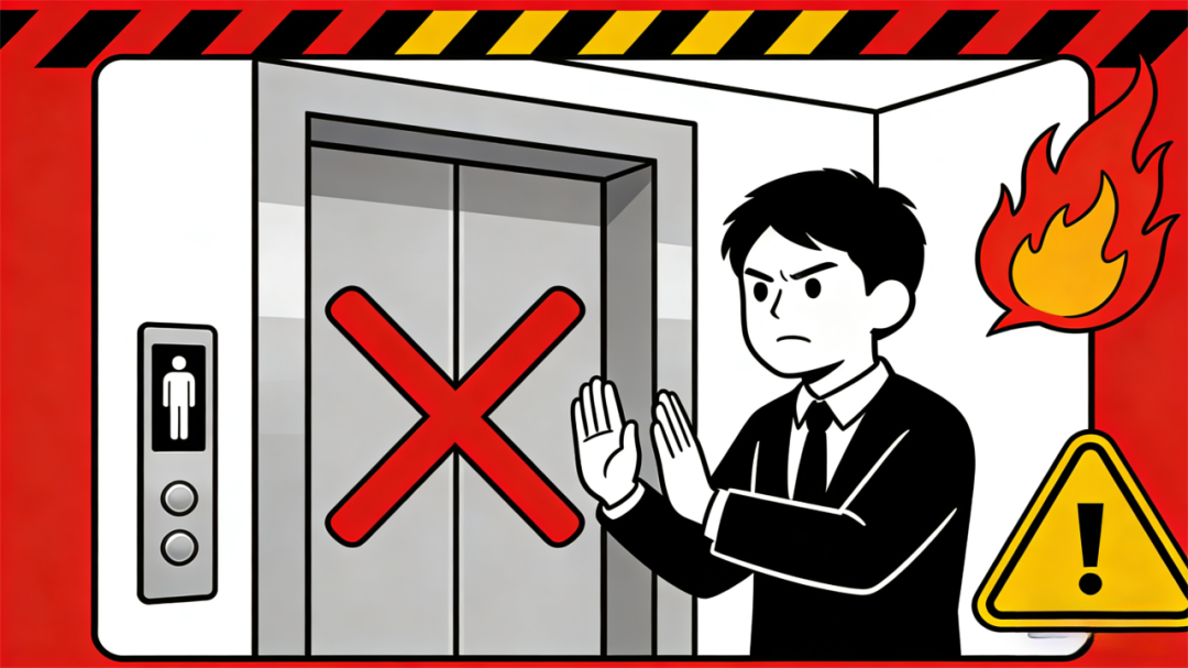 再着急也千万别走进电梯!火灾时,电梯不仅会随时停运,还可能变成危险的“烤箱”。