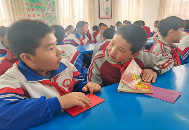 “这是我最喜欢的绘本,希望你能喜欢!”“这是我最喜欢的玩具,希望你喜欢!”在活动中,中宁县第三小学的孩子们为乡村伙伴送去书籍、文具等“温暖礼包”,农村孩子则回赠家乡特色手工艺品、农产品,传递双向关怀。结对子,手拉手,他们互相认识交流,互赠祝福卡和特色小礼物,活动现场氛围热烈,其乐融融,情谊浓浓。