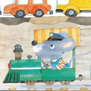 田鼠有列小火车,每天在 洞里开到东开到西。小青蛙准备去河边游泳,可他不想走着去。他挤啊挤,挤进了田鼠洞。
