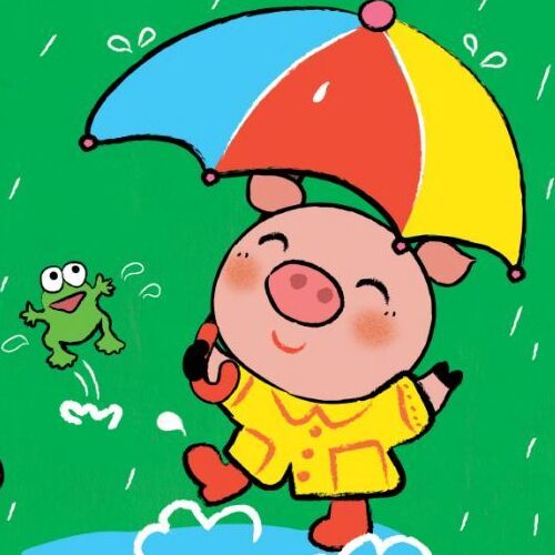 滴滴答,滴滴答……下雨啦!青蛙跳进小池塘,看见鱼儿追着雨滴玩耍。下雨,不怕!
