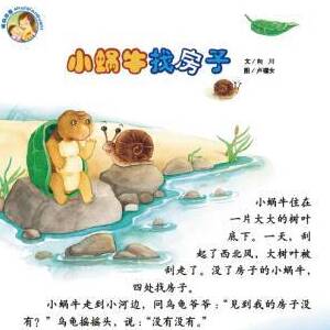 小蜗牛住在一片大大的树叶底下。一天,刮起了西北风,大树叶被刮走了。没了房子的小蜗牛,四处找房子。