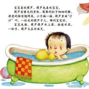 葫 芦 金 黄 色 的 身 体 , 圆 圆 的 肚 子 细 细 的 腰 , 漂 亮 的 脑 袋 翘 得 高 。 小 手 摇 一 摇 , 葫 芦 里 面 “ 沙 沙 ” 叫 , 一 肚 子 的 葫 芦 子 儿 , 都 问 宝 宝 好 。