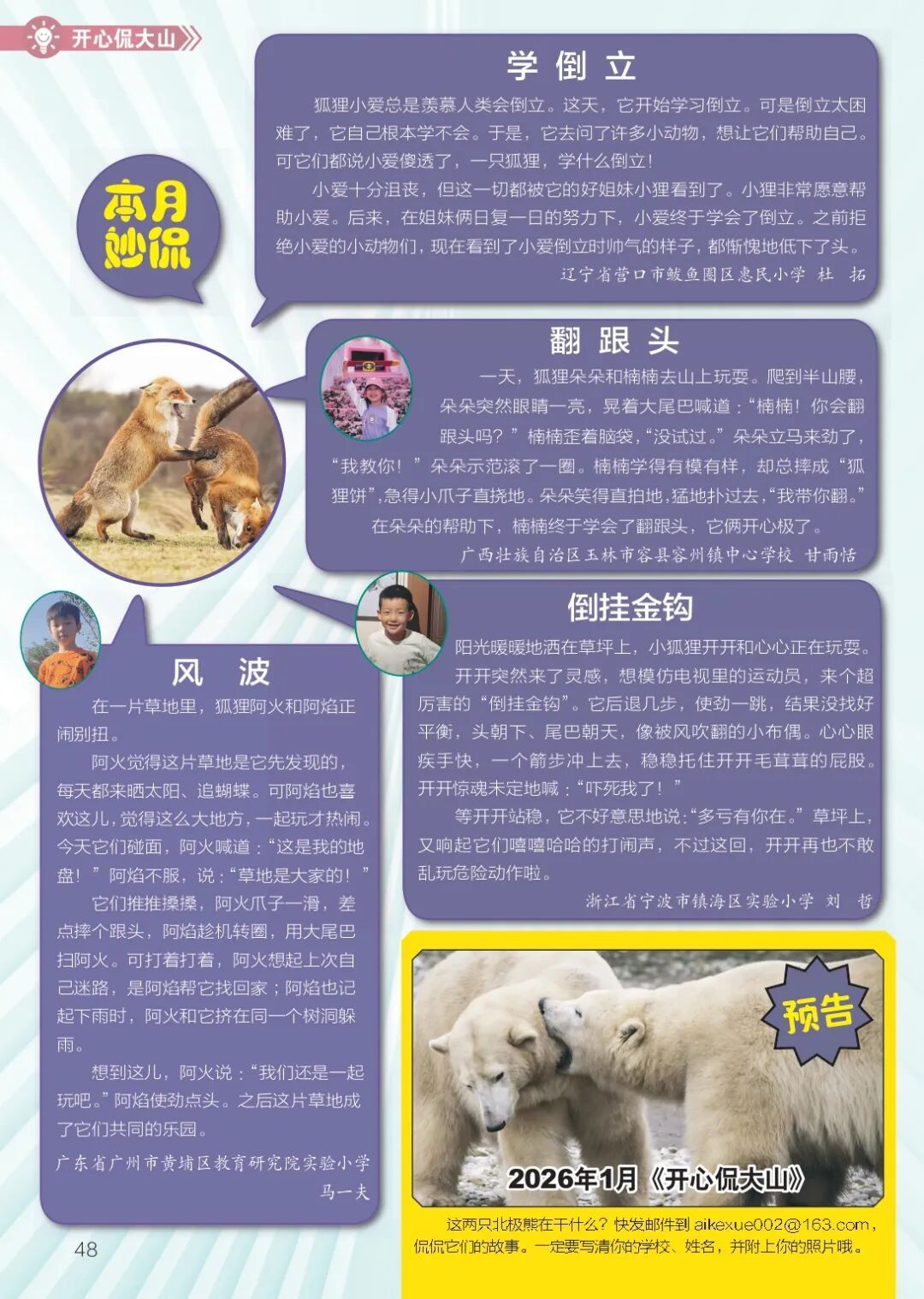 2025年10月《我们爱科学》“开心侃大山”栏目小读者投稿和预告