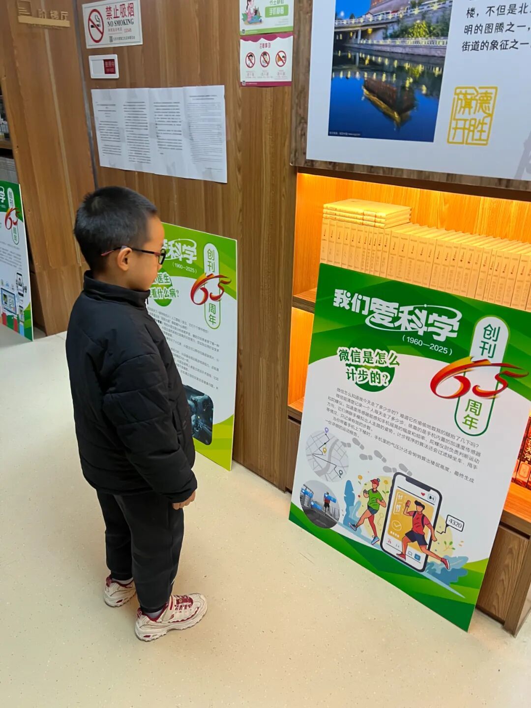 走进石榴籽书屋活动区,精心设计的展览区立即吸引了参观者的目光。十个内容丰富、设计精美的科普展板依次排开,构成了一道亮丽的科技风景线。展板内容紧扣时代脉搏,既关注科技前沿,又贴近日常生活:人工智能展板通过生动的图文了解AI技术如何改变我们的生活;在机器人技术展区,一个个有趣的实例让孩子们惊叹不已;更让人惊喜的是,那些日常生活中习以为常的科技应用——二维码的编码原理、微信运动的计步机制、手机人脸识别的技术奥秘,都以浅显易懂的方式呈现在展板上,引发了大小观众们的浓厚兴趣。