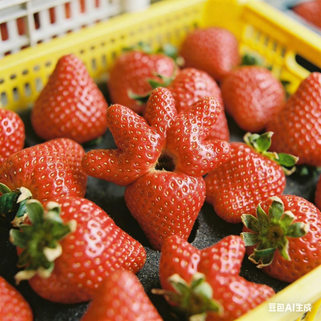草莓在开花结果时,对生长环境十分敏感。如果出现温度骤变、蜜蜂访花不勤快、花期受到小虫侵扰等情况,都可能导致草莓授粉不均,最终长成外形不规则的草莓。这种看似畸形的草莓只是长相独特,吃起来一样汁水饱满、甜香十足!