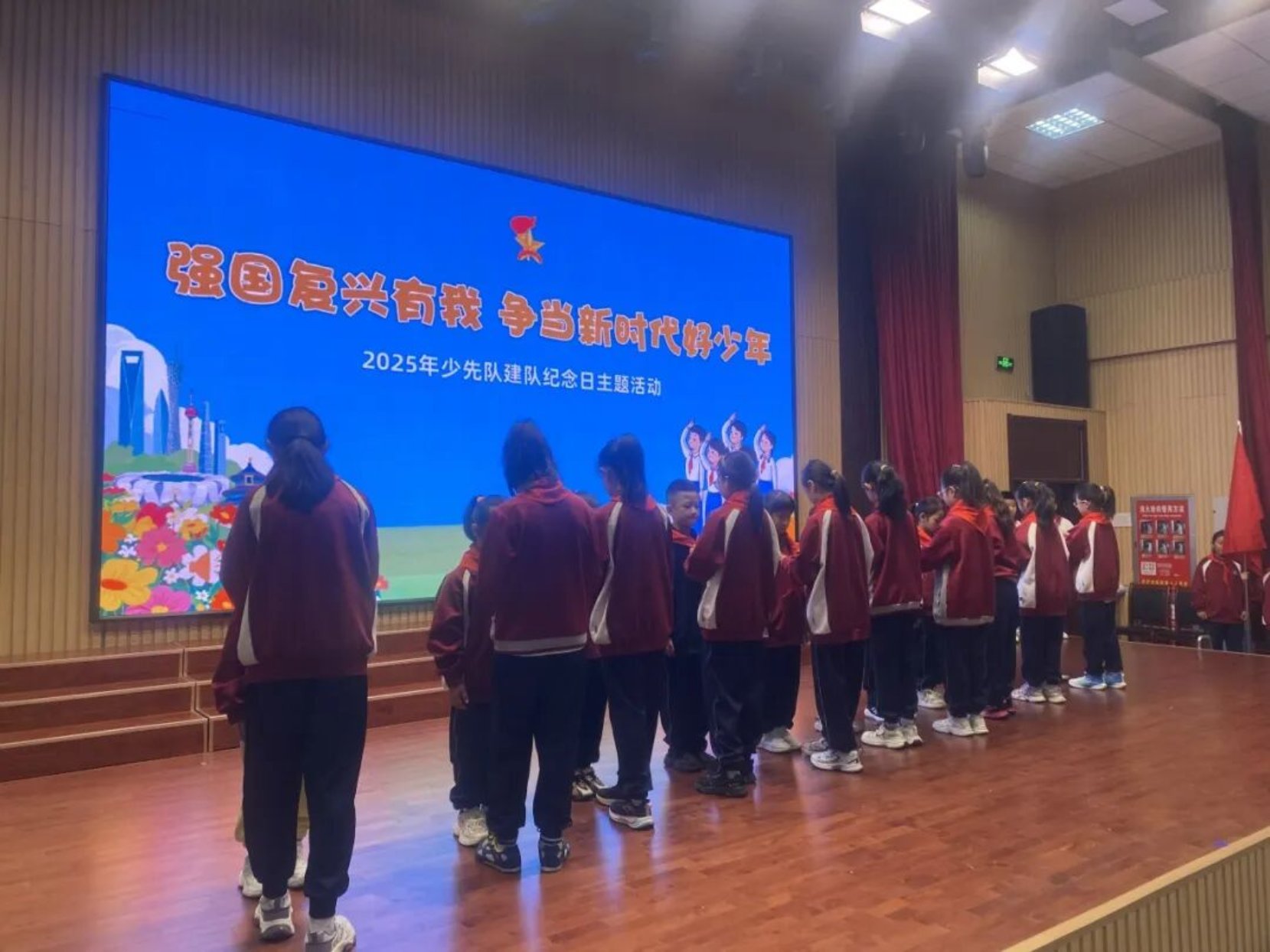 “我们是共产主义接班人,继承革命先辈的光荣传统……”,全场队员齐声高唱《中国少年先锋队队歌》。嘹亮的歌声回荡在校园,唱出了新时代少年对理想的追求,也唱出了他们传承红色基因的坚定决心。