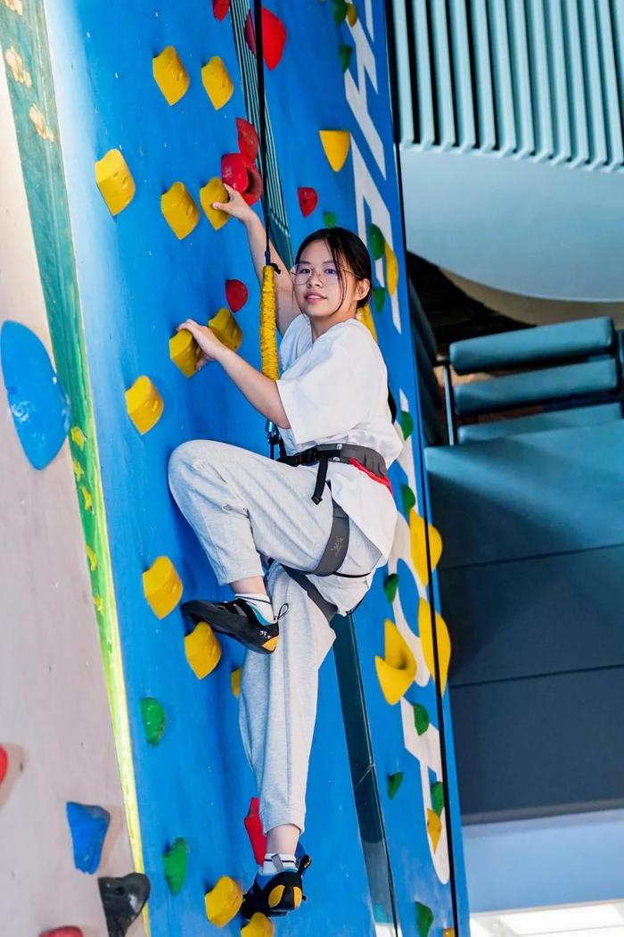 希望工程·安踏希望班同学在晋江982创动空间体验攀岩。(图源:活动主办方供图)