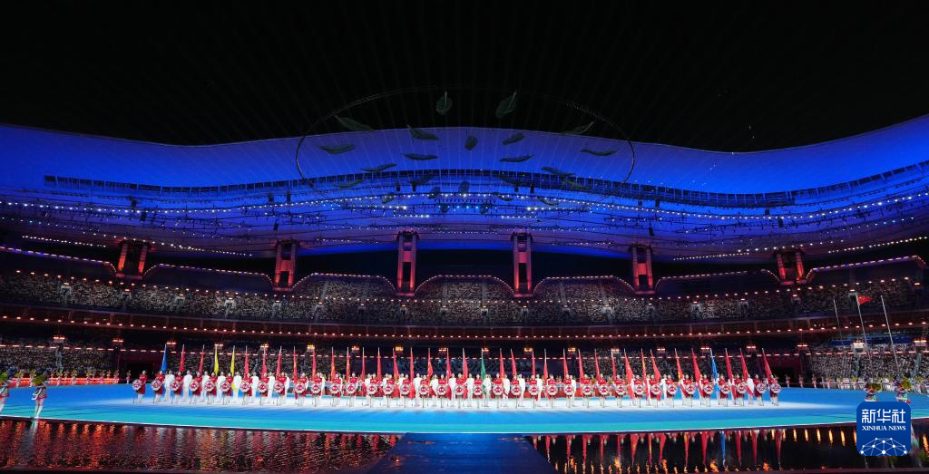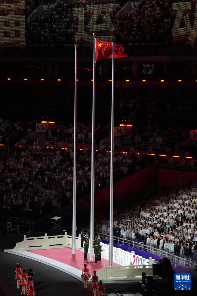 11月9日,中华人民共和国国旗、中华人民共和国运动会会旗和第十五届全国运动会会旗在开幕式现场升起。