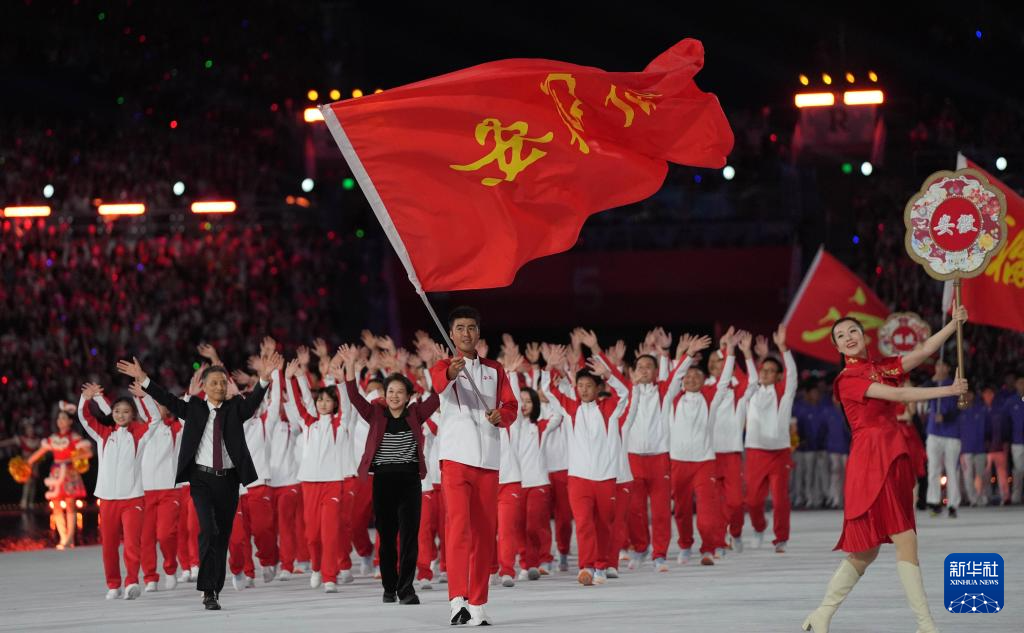 11月9日,湖北省体育代表团在入场仪式上。