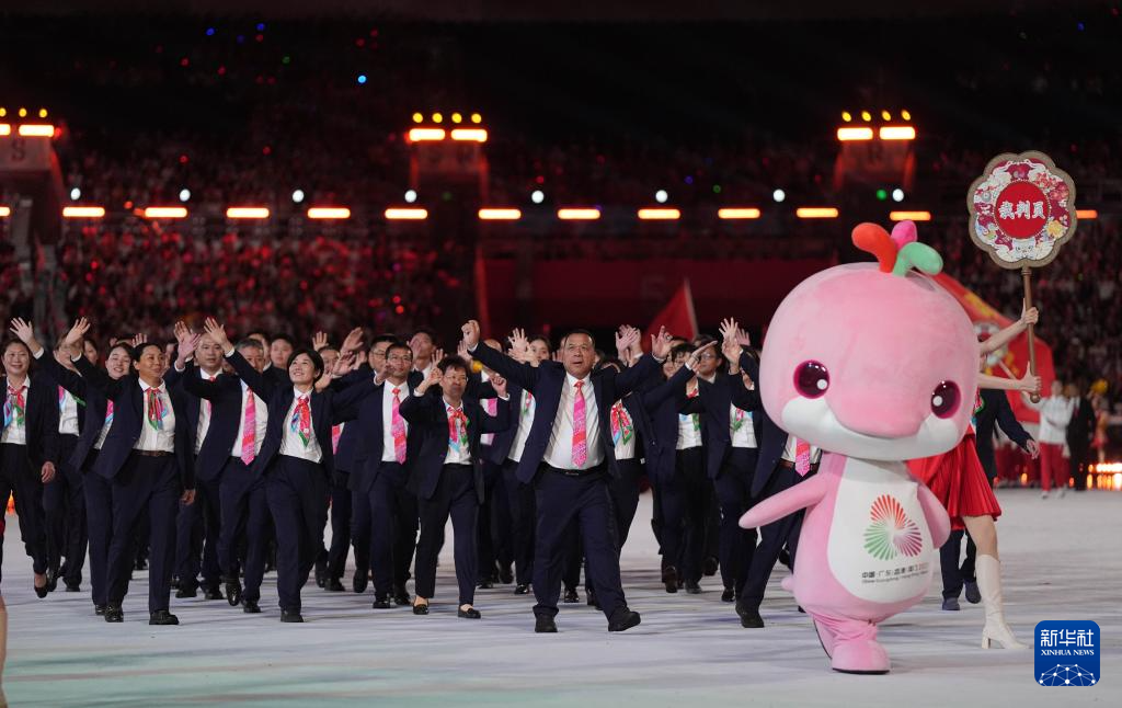 11月9日,广东省体育代表团、香港特别行政区体育代表团和澳门特别行政区体育代表团在入场仪式上共同入场。