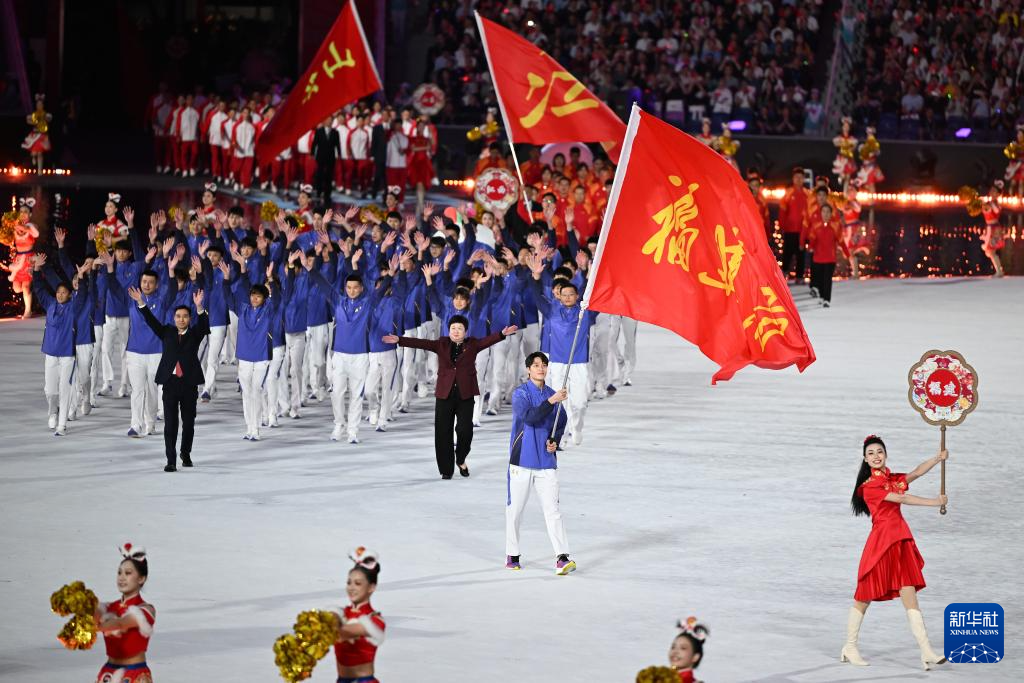 11月9日,福建省体育代表团在入场仪式上。