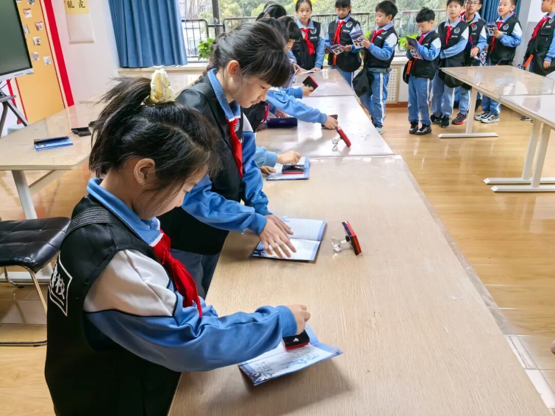 午休时间也充满惊喜!孩子们参与趣味集章打卡活动,营期手册上很快盖满了各式各样的纪念章。“手册里有禁毒知识答题和情景指引,我要带回家给爸爸妈妈讲讲!”一名同学小心翼翼地珍藏着手册,上面记满了课堂上的禁毒知识点。一层大厅国旗前,“请党放心,强国有我”的誓言铿锵响起,稚嫩的声音里满是坚定,每一个字都饱含着对祖国的热爱、对责任的认知。活动中,小主持、红领巾爱国宣讲员、中队旗手、授巾队员、分享队员等多元角色,让每个孩子都有机会展现自我,在互动中收获成长。