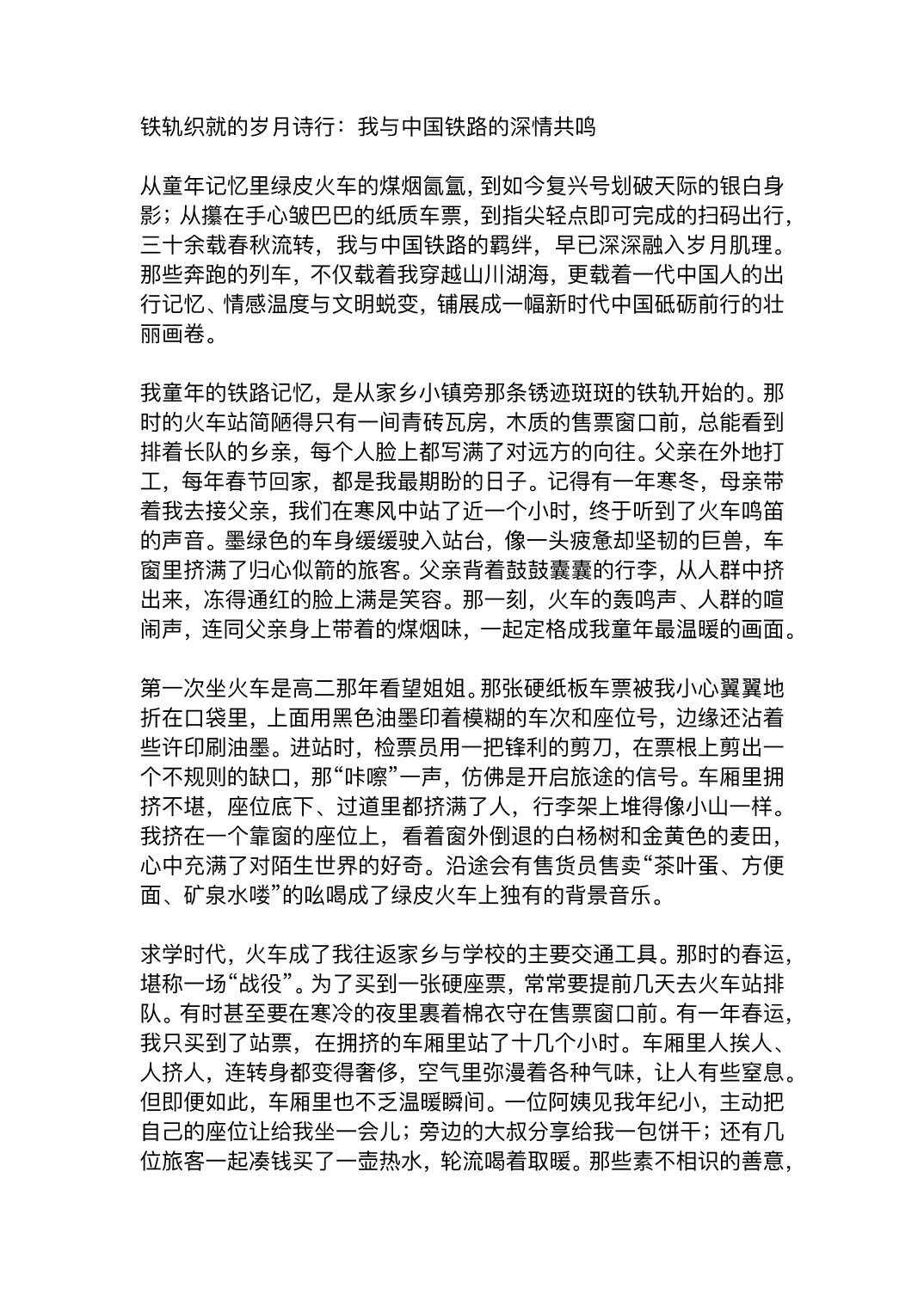 铁轨织就的岁⽉诗⾏:我与中国铁路的深情共鸣