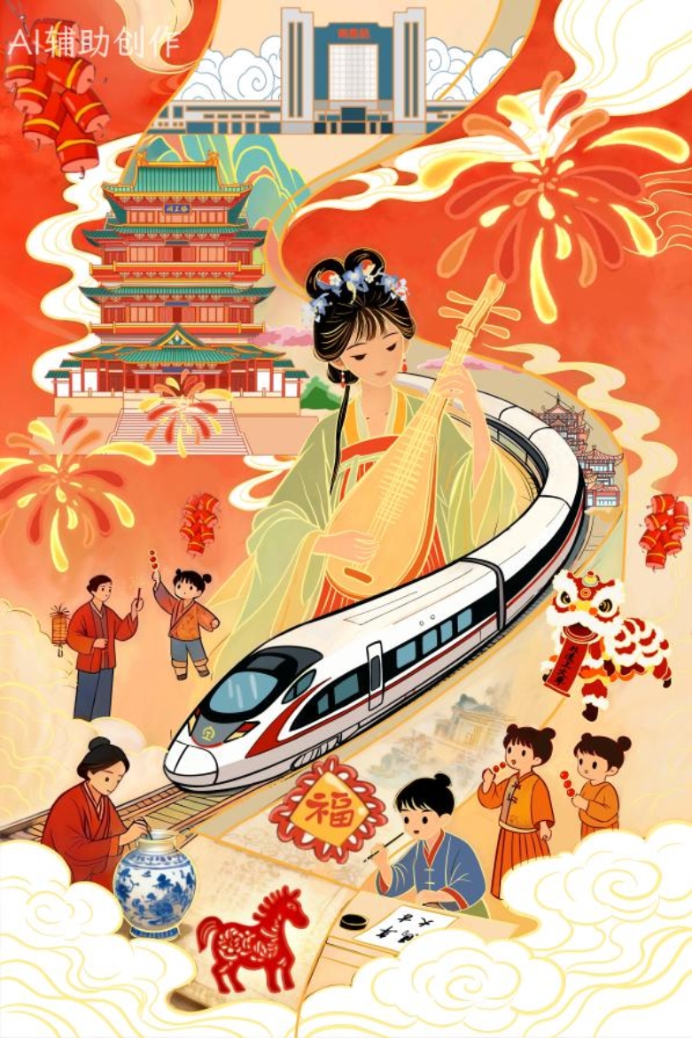 马年春节即将到来,春运旅程持续火热。一列列飞驰的高铁、一座座繁忙的车站,正悄然生长出新的文化肌理。当国家级非遗方正剪纸登上G2644次列车,桂林糖画传承人在Z6次“列车春晚”上以勺为笔勾勒出本命年的骏马,郑州机场搭建“百马迎春 奔腾向前”非遗剪纸艺术展的展厅……春运不再只是跨越山河的迁徙,更是一场浸润人心的文化旅程。