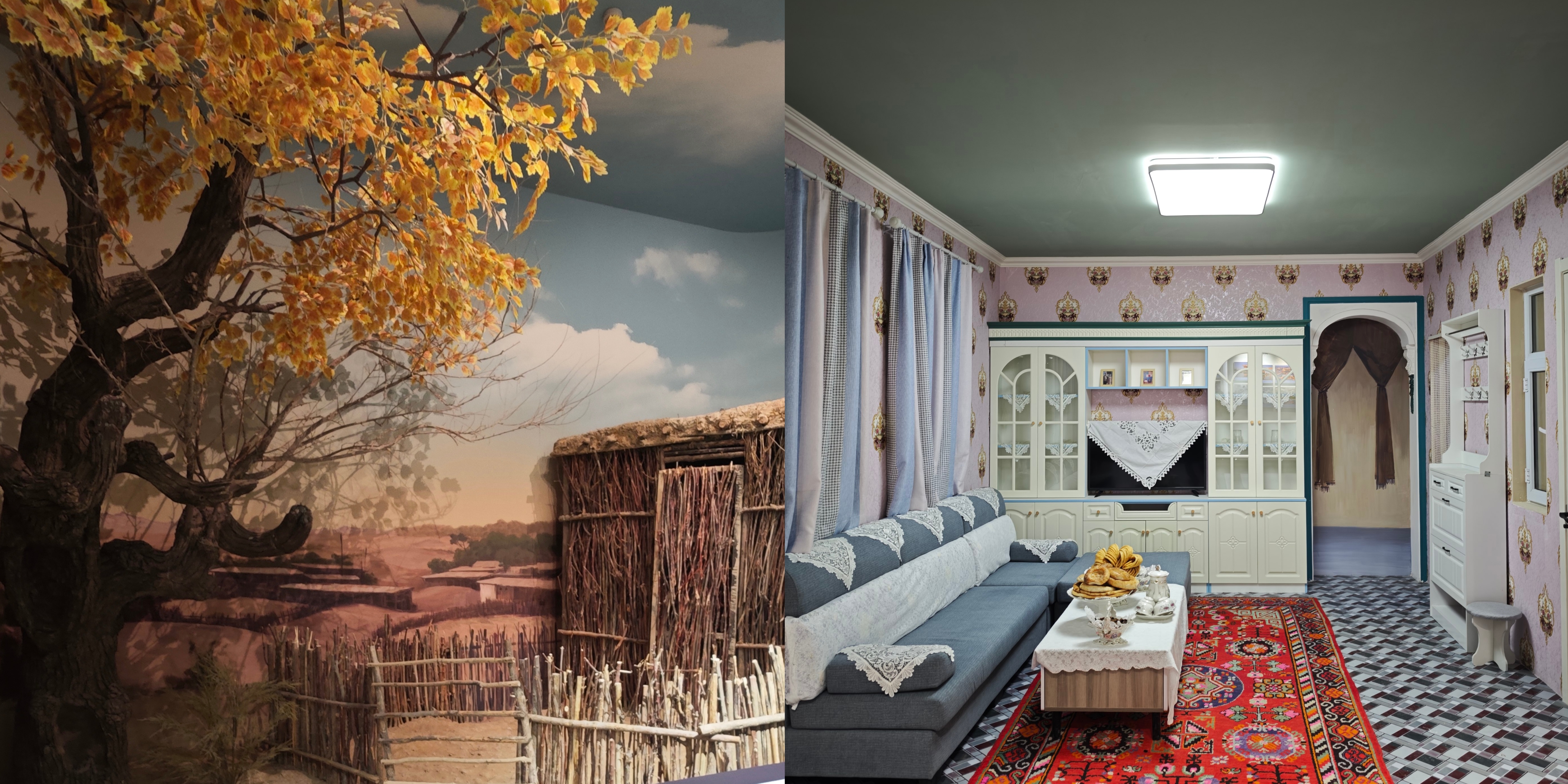 一边是胡杨木和红柳搭建、泥巴糊墙,冬天四处漏风的房子;一边是现代化的两层小楼……讲解员姚慧敏说,在展现和田地区达里雅布依村沧桑巨变的新旧复原场景前,习近平总书记驻足观看。