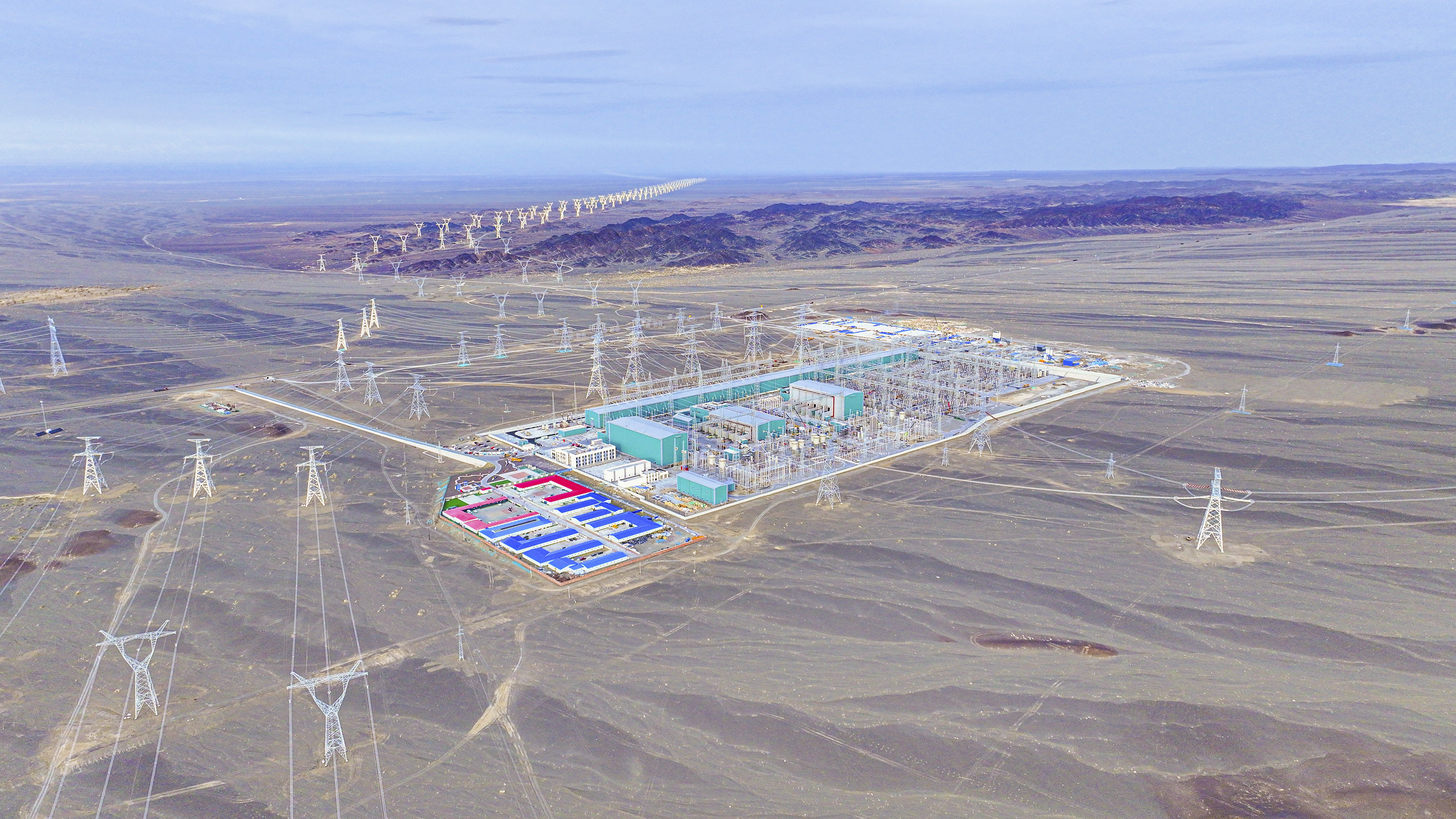 在新疆哈密地区拍摄的哈密±800千伏巴里坤换流站(4月17日摄,无人机照片)。
