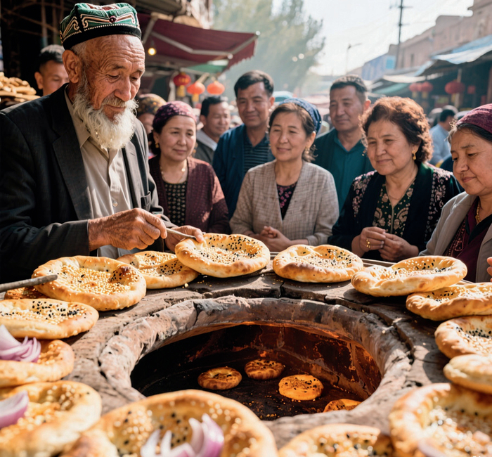 我还要带你走进我的小区——一楼的哈萨克族阿姨刚炸好金黄油亮的包尔萨克;二楼的回族奶奶也在厨房忙碌,油锅噼啪作响,炸出的油香顺着窗户飘进楼道;我家的厨房里,妈妈正将从河南寄来的芝麻香油,细细淋进滚烫的新疆大盘鸡里。这一口鲜香,正是丝路味道与中原风味跨越数千里的完美融合。