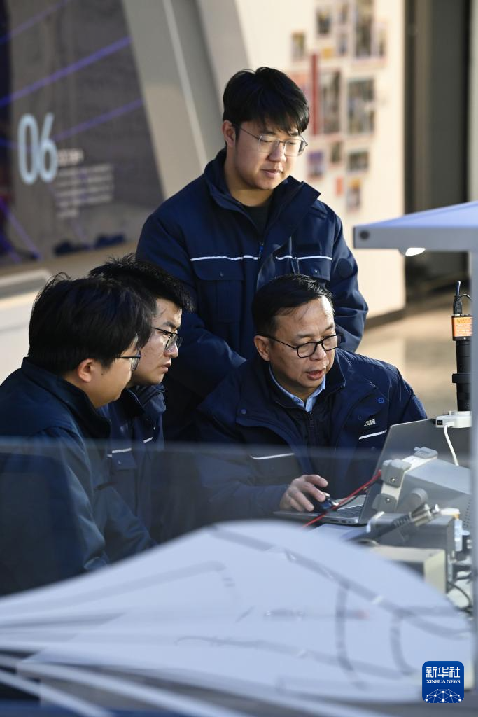 2月4日,在位于陕西省渭南市的陕西铁路工程职业技术学院实训室,董宏涛(左三)与师生交流。