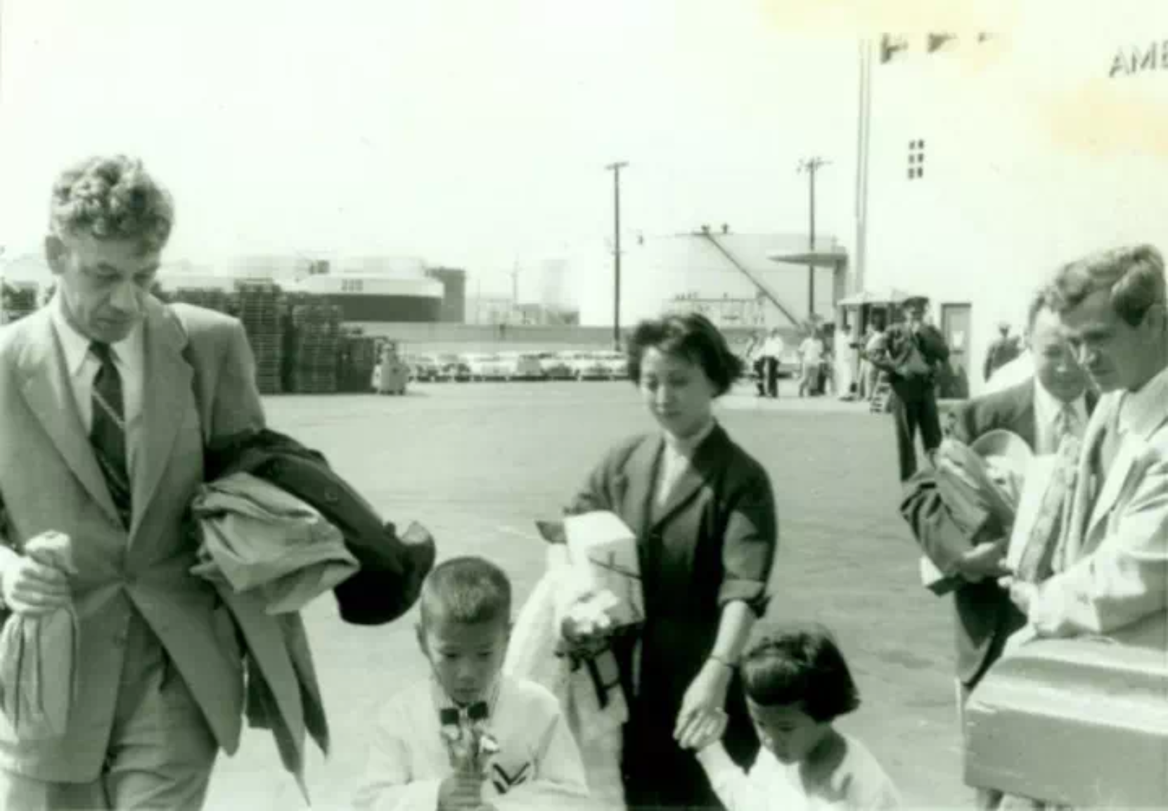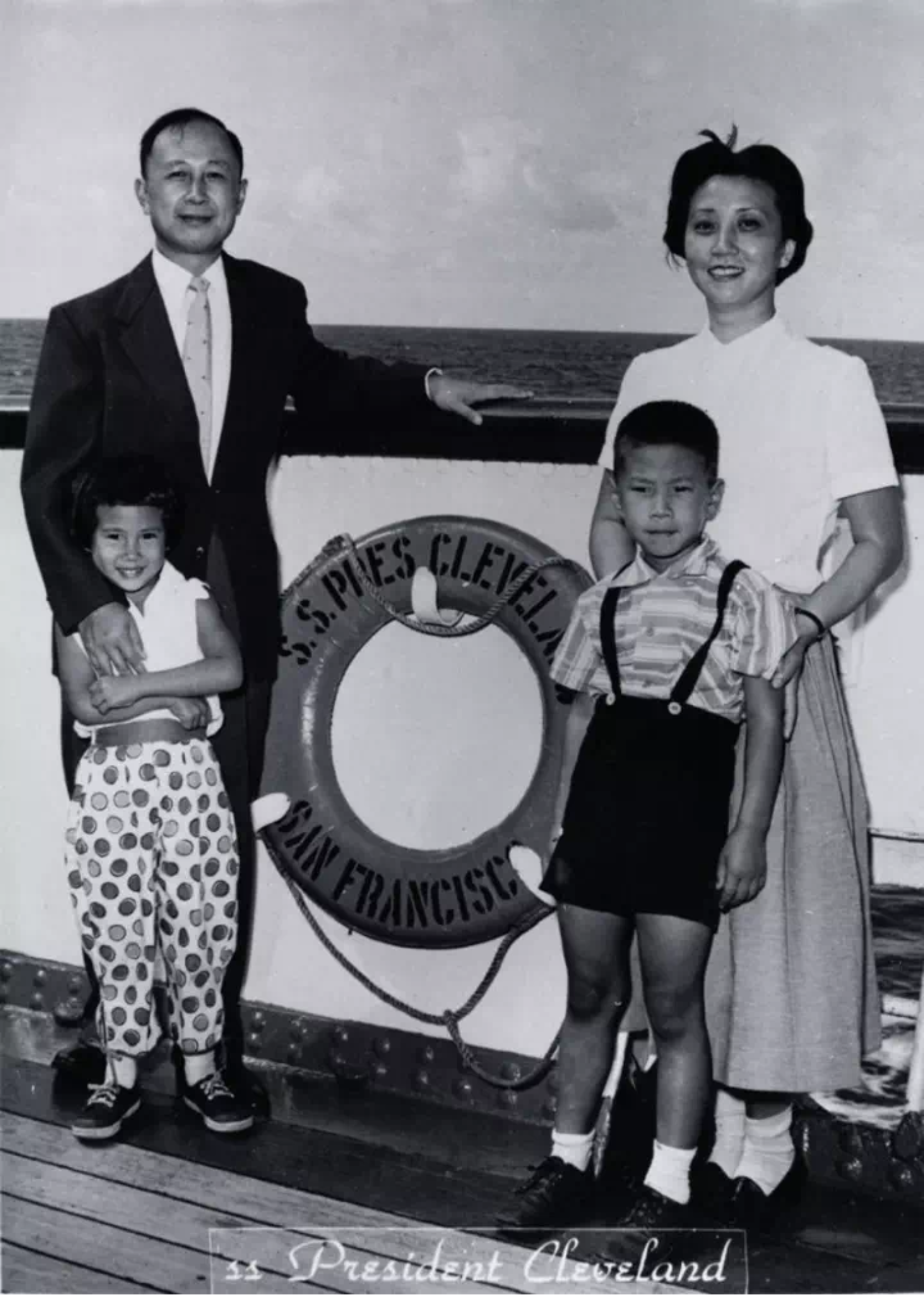1955年,钱学森一家启程回国时,在克利芙兰总统号轮船的甲板上留影。