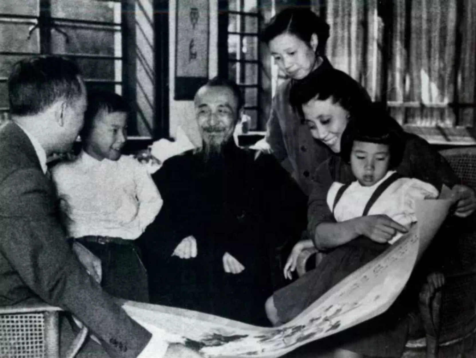 1955年10月,钱学森一家回到上海与老父钱均夫合影(前排左一:钱学森、钱学森的儿子、钱均夫、钱学森夫人蒋英(右二)、钱学森女儿)