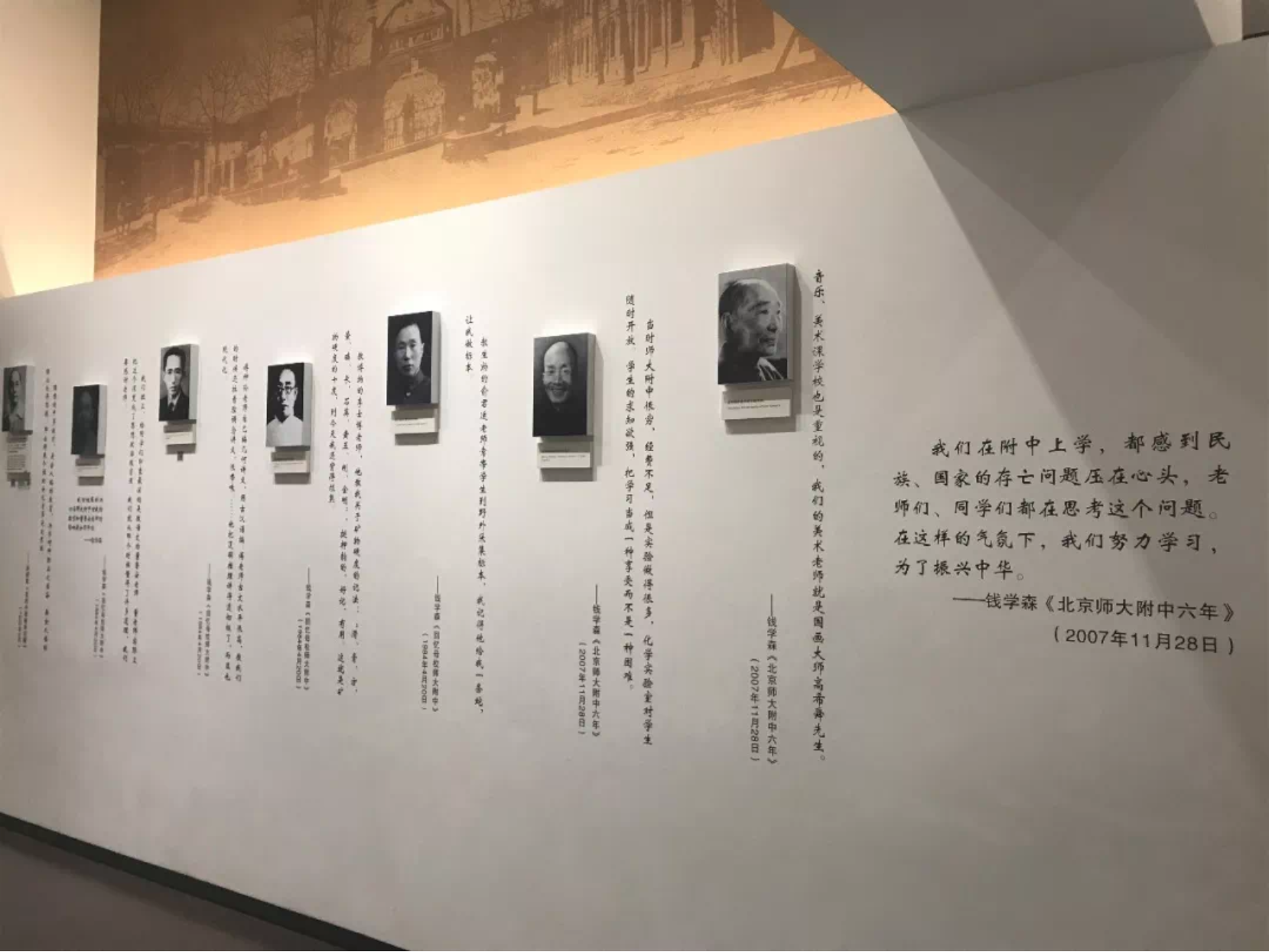 展品:北师大附中七位老师钱老晚年曾列过一份对他产生深刻影响的17位长者的名单,其中有七位来自北师大附中。