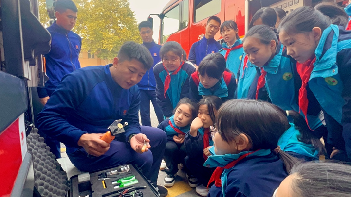 在“119”全国消防日来临之际,河北省保定市莲池区冀英学校的20名少先队员,佩戴着鲜艳的红领巾,走进莲池区东风路消防救援支队,开展了“致敬火焰蓝 安全伴成长”主题实践活动。