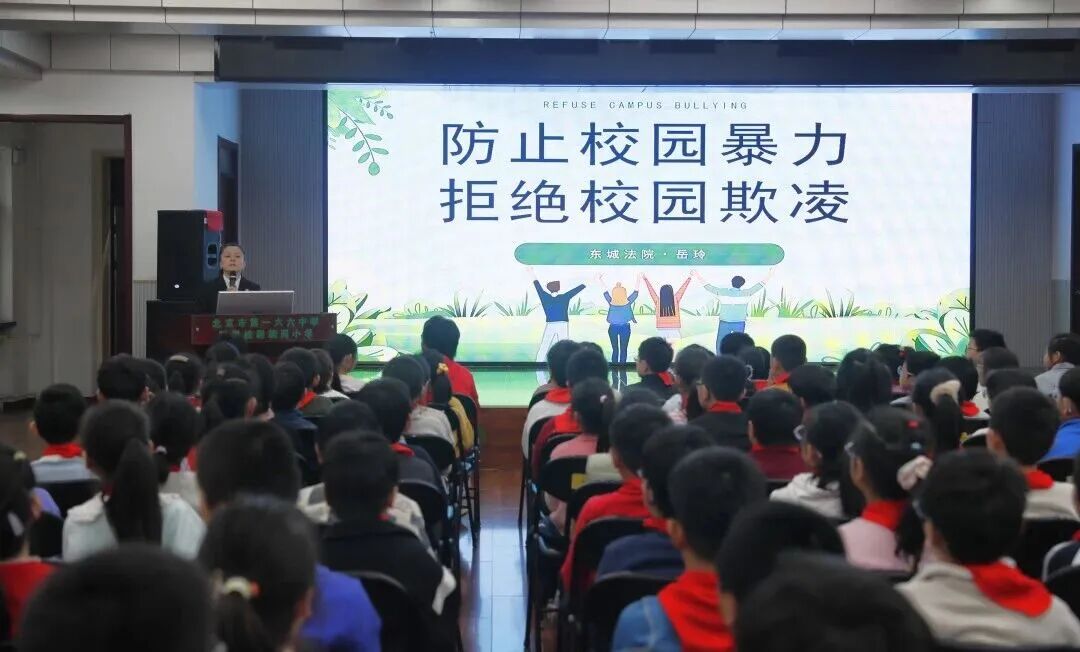 11月7日,北京共青团“星光自护 伴你同行”自护普法宣传教育活动走进北京市第一六六中学附属校尉胡同小学,开展了“防止校园暴力,拒绝校园欺凌”主题宣讲。