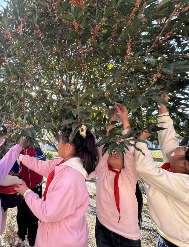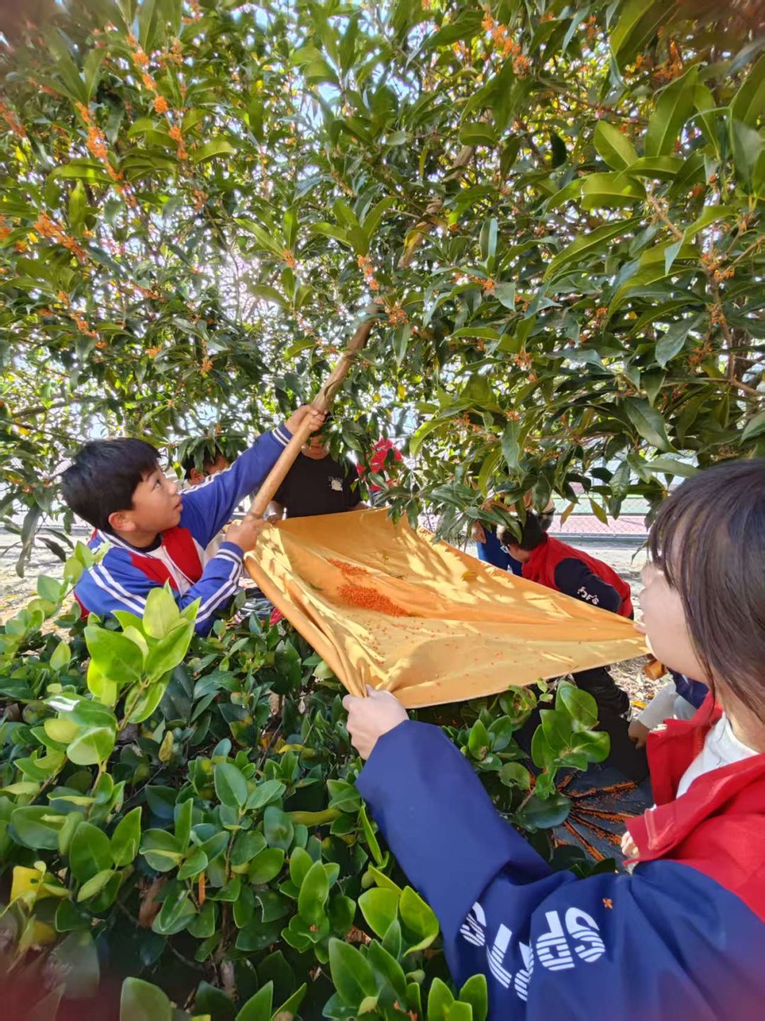 时序近冬,秋意将阑,浮梁三小的桂花仍坚守枝头,吐露着清甜芬芳。近日,在章桃、陈建强、李梦洁三位班主任工作室主持人的精心组织下,一场以“采桂闻香·传承雅韵”为主题的沉浸式劳动实践活动在校园里欢乐上演。由六个班级学生组成的吉祥队、如意队与丰收队,化身“小小探秘家”,走进这片冬日里的金色桂海,在动手采摘、团结协作中,感受丰收的喜悦,解锁自然的奥秘,真正上了一堂生动有趣的“实践育人课”。