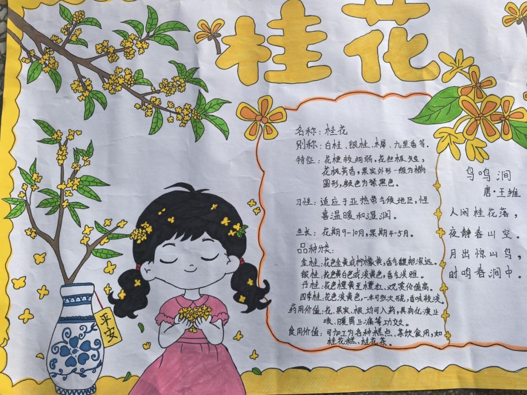 活动伊始,各班的主题班会就变成了有趣的“桂花探秘”启动会。“大家知道桂花为什么这么香吗?”“它除了好看好闻,还能做什么?”在老师们生动的讲解中,同学们瞪大了好奇的眼睛。从“桂子月中落,天香云外飘”的古老诗句,到桂花糕、桂花蜜的甜蜜美味,再到它象征“美好与荣誉”的文化寓意,一朵小小的桂花,在同学们心中变成了充满魅力的“秋日精灵”。随后的知识小问卷,更是点燃了大家探索的热情,每个人都对接下来的实践环节充满了期待!