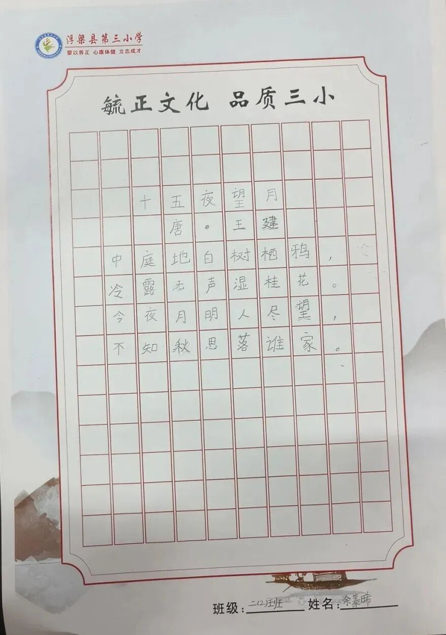 活动现场桂香浮动,同学们的雅致情怀愈发浓厚。那些浸润着桂韵清芬、承载着文人意趣的古诗,成为此刻最动人的载体。大家伏案提笔,笔尖轻蘸墨香,将“暗淡轻黄体性柔”的婉约、“独占三秋压众芳”的清雅、“天香云外飘”的悠远,一笔一画抄录在素笺之上,让墨色与花香在纸间交融。