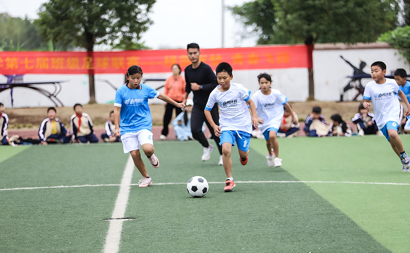 江西省上饶市余干县古埠镇中心小学足球运动场,学生们用用汗水与拼搏展现“热辣滚烫”的青春活力。通讯员 韩海建 摄