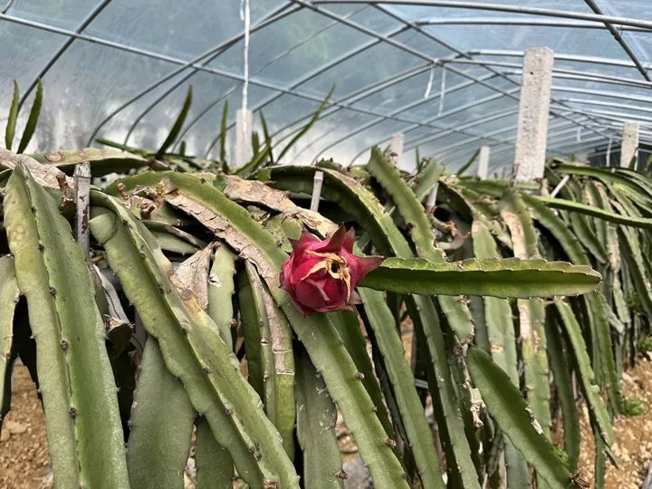 火龙果大棚里,枝头挂着一个个“小红灯笼”,有的红得发亮,有的还带着点青脸蛋。同学们踮着脚尖围过来,小脑袋凑在一起,期待的小眼神都快黏在果子上了。