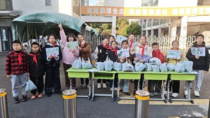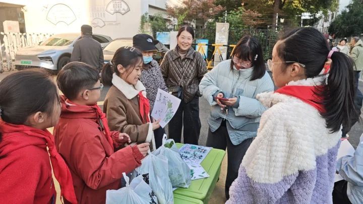此次收获的蔬菜产量可观,学校精心策划了“蔬菜售卖”活动——在校门口设立摊位,将蔬菜出售给家长和老师,售卖所得款项将全部用于东篱小圃建设。