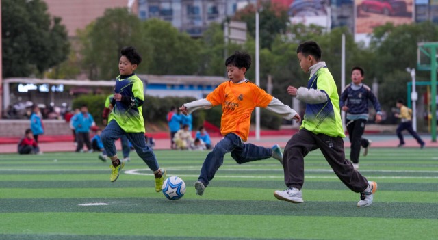 近年来,江西省吉安市吉州区韶山路小学积极推进足球教育进校园、进课堂活动,让孩子们快乐中锻炼身体,乐享足球运动。中国教育报-中国教育新闻网通讯员 李军 摄