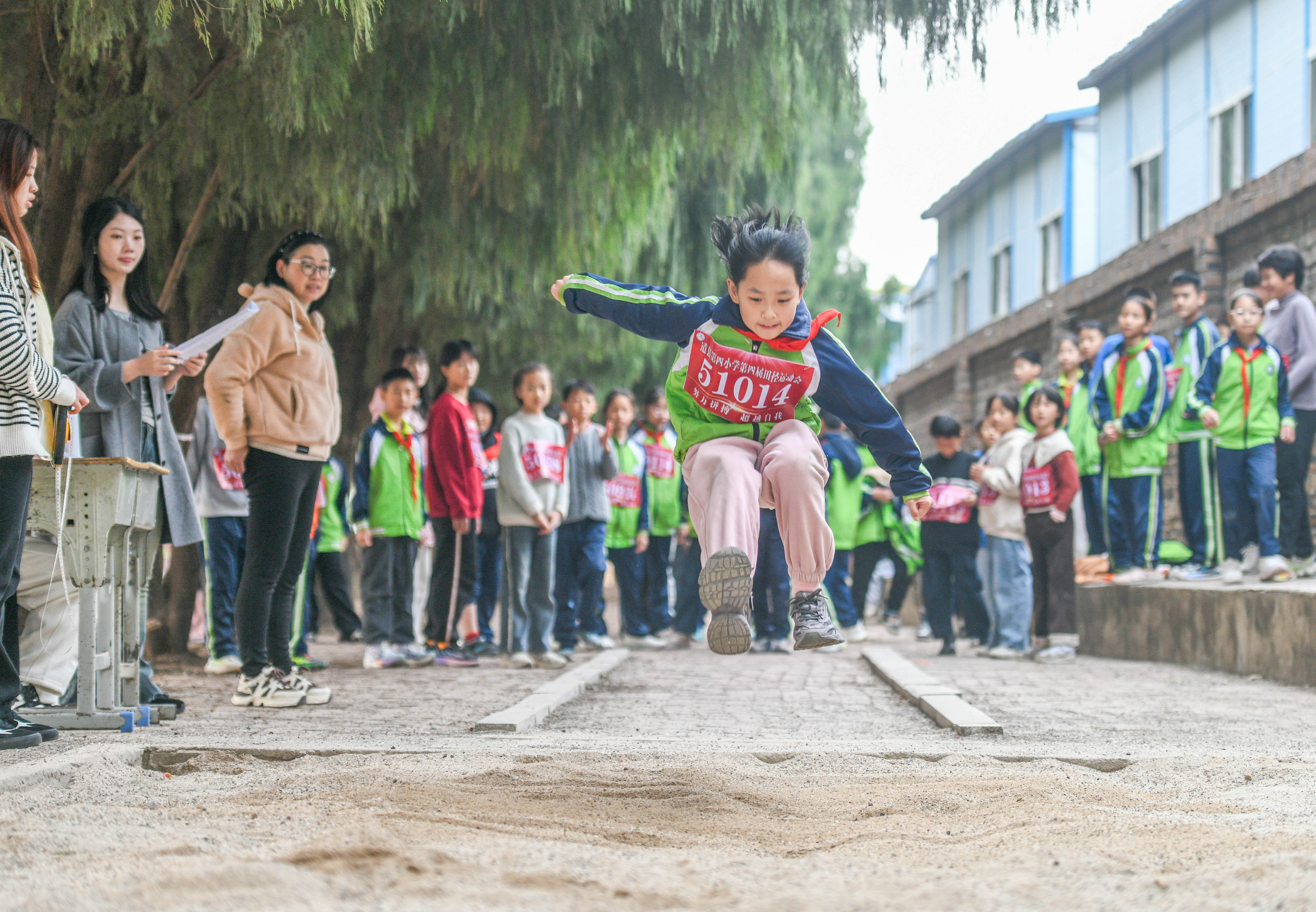 湖南省永州市道县第四小学学生在参加跳远比赛。 通讯员 蒋克青 陈敏敏 摄