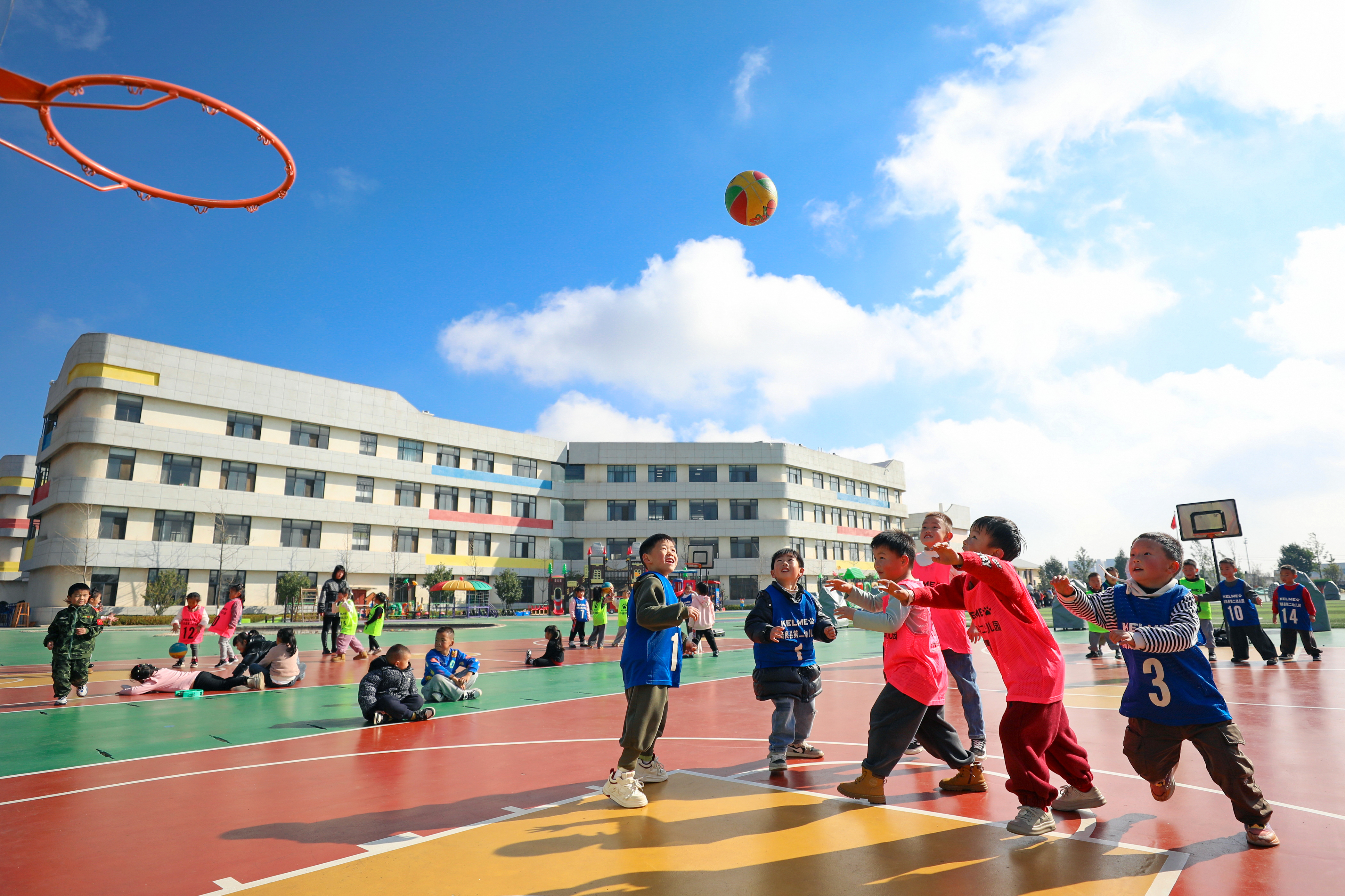 12月19日,云南省曲靖市陆良县第二幼儿园的操场,一场充满童趣的幼儿篮球比赛正在激烈角逐中。王勇 摄