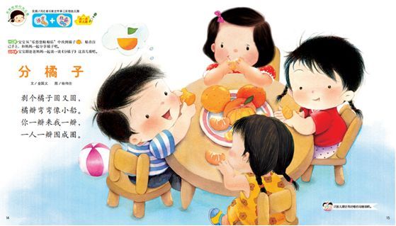 对于孩子来说,生动的故事、有趣的儿歌比枯燥的道理有用得多。我们可以和宝宝一起读《婴儿画报》中关于友谊和分享的儿歌和故事。在轻松的亲子阅读中,让孩子感受到:分享,是一件能让大家都开心起来的事。