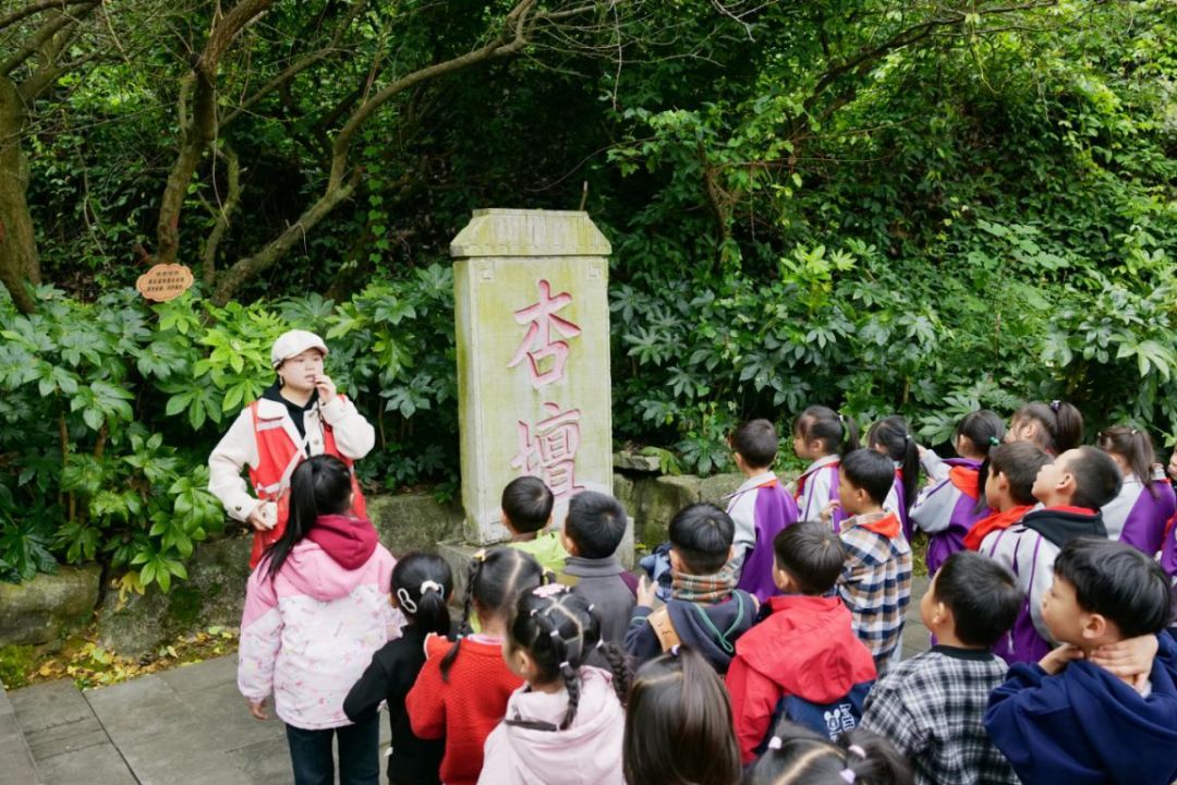 活动尾声,全体学子齐聚杏坛。在这片承载着“有教无类”教育理念的场地,队员们聆听孔子设教的典故。此次社会实践活动,将中华优秀传统文化与学科学习深度融合,让队员们在沉浸式体验中读懂文化的厚重,在实践探索中提升综合素养。