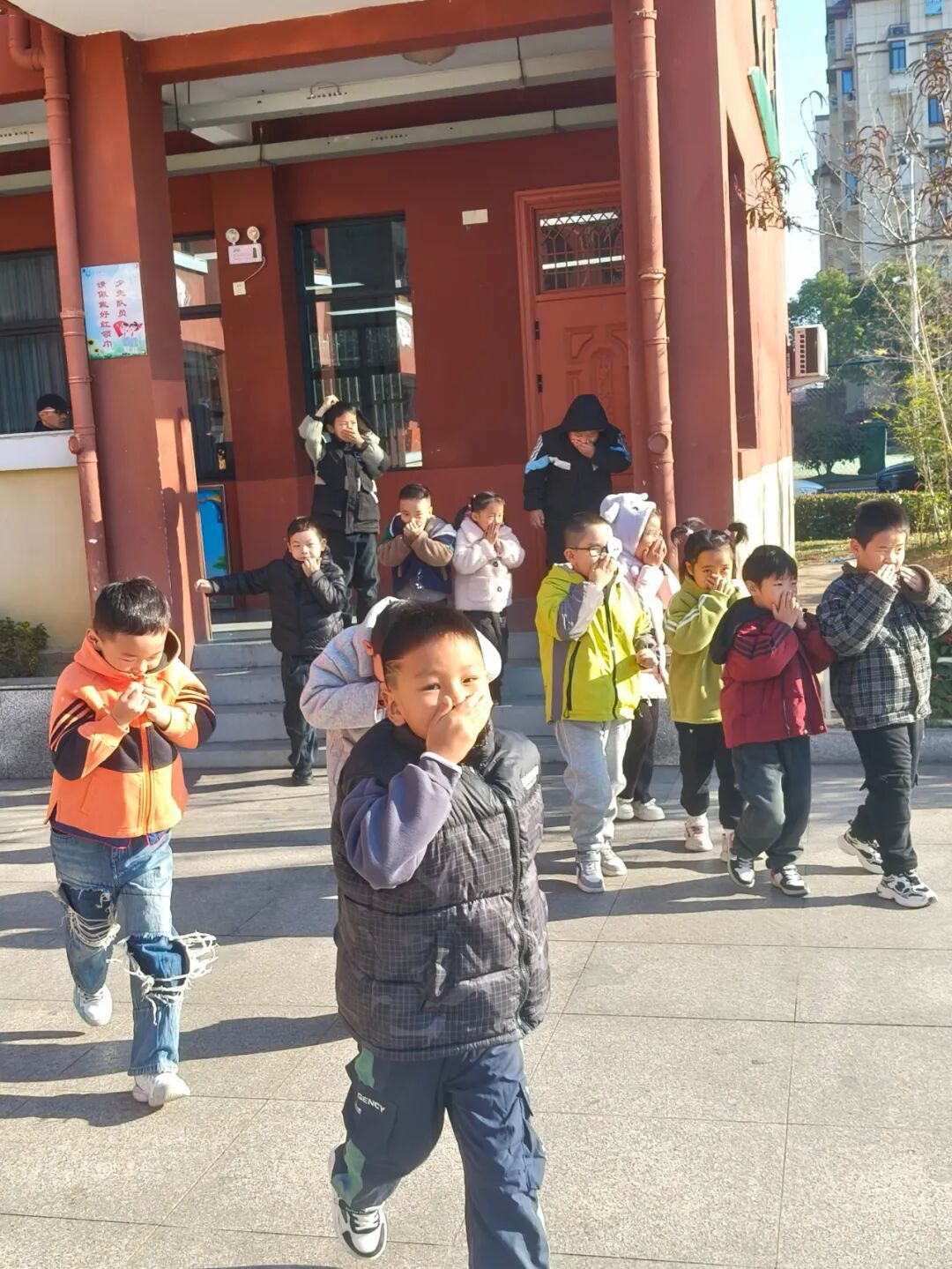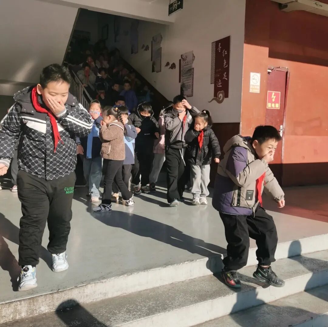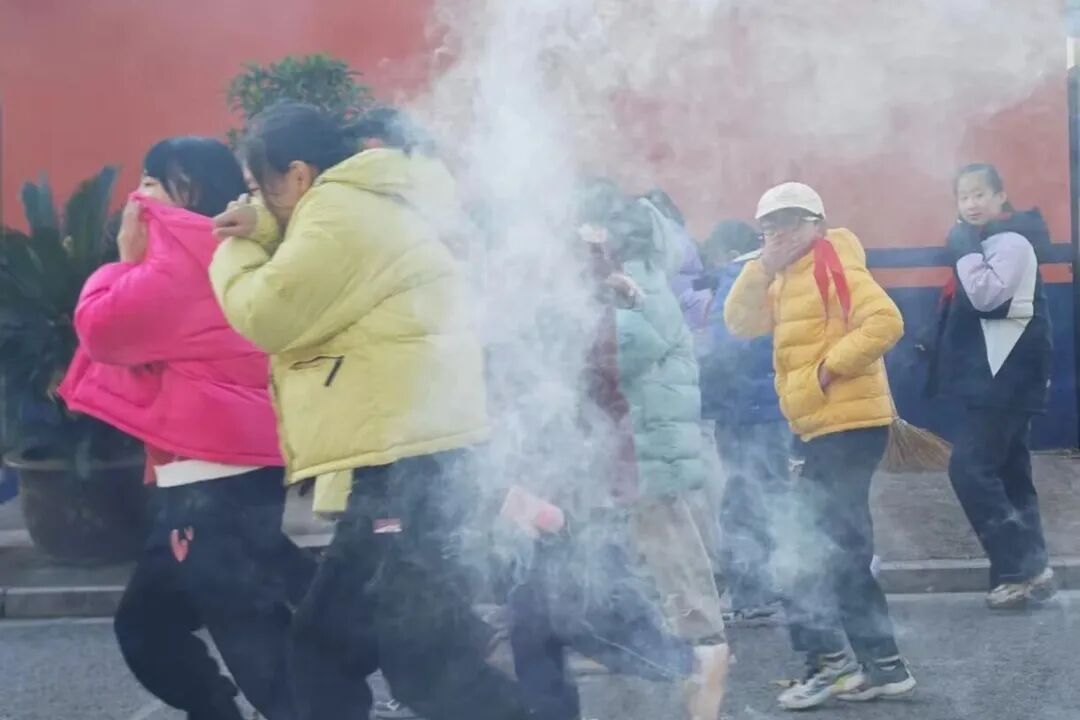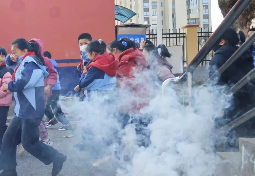 随着一阵急促而响亮的消防警报声划破校园的宁静,演练正式拉开帷幕。各位老师立即到达指定岗位,沉着冷静地指挥学生快速、有序撤离。同学们在老师的带领下,严格按照事前教导的逃生要领,用湿毛巾、衣物等捂住口鼻,弯腰低姿,沿着预定疏散路线,迅速向学校操场的安全地带集结。全体师生到达安全集合点后,各班主任迅速清点人数,并逐级向现场总指挥汇报。
