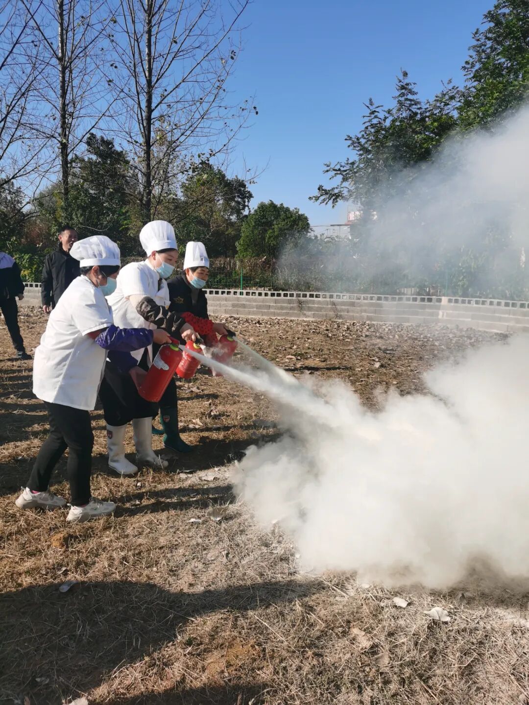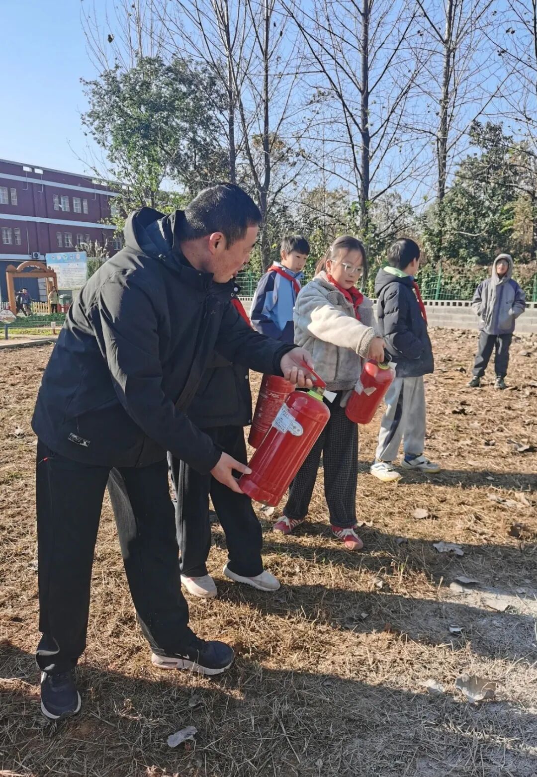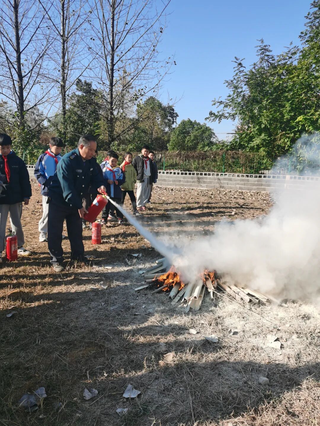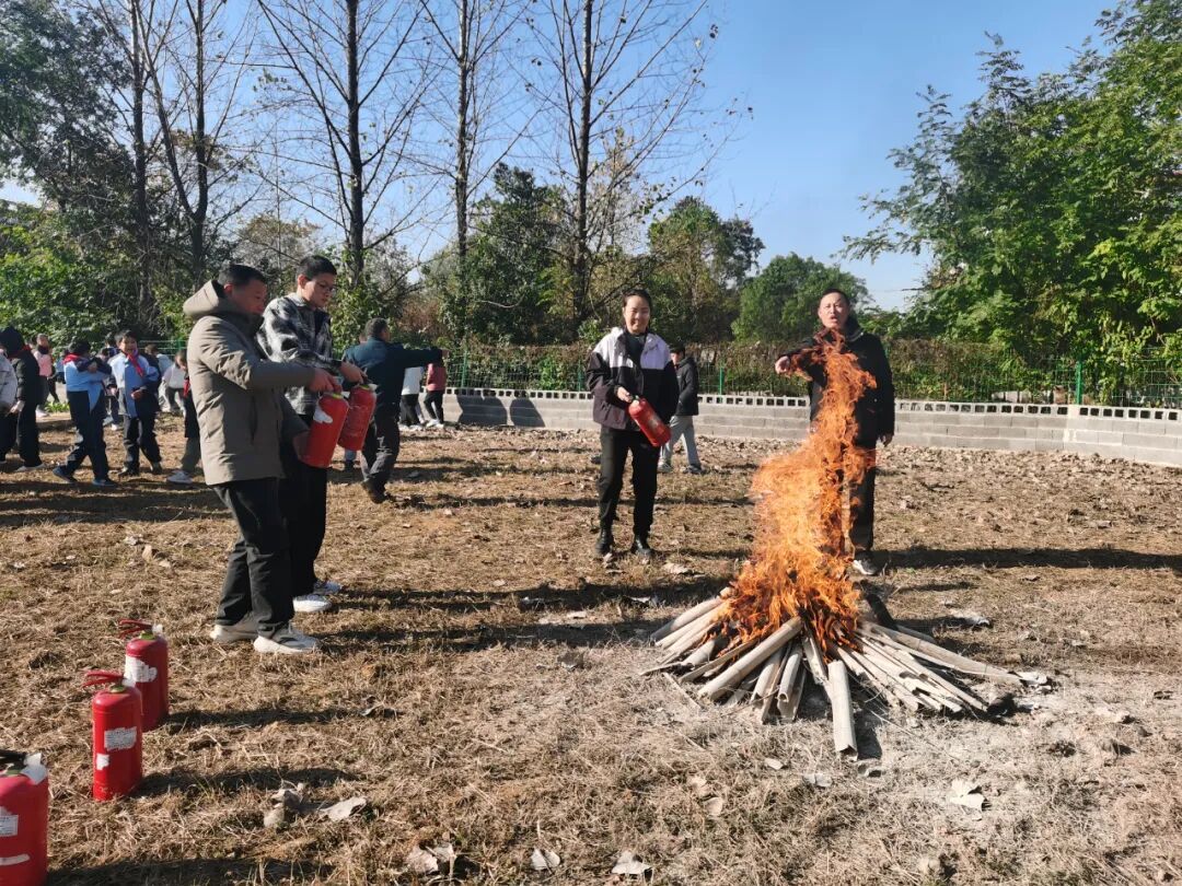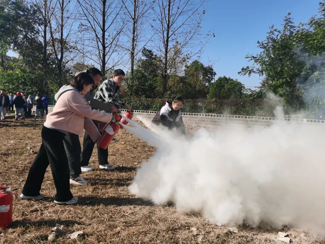 随后,在灭火演练阶段,专业人员介绍了灭火器的正确使用方法,详细讲解了“提、拔、握、压”四个关键步骤后。师生们踊跃参与,亲身体验了使用灭火器扑灭初期火灾的过程,进一步掌握了灭火技能。