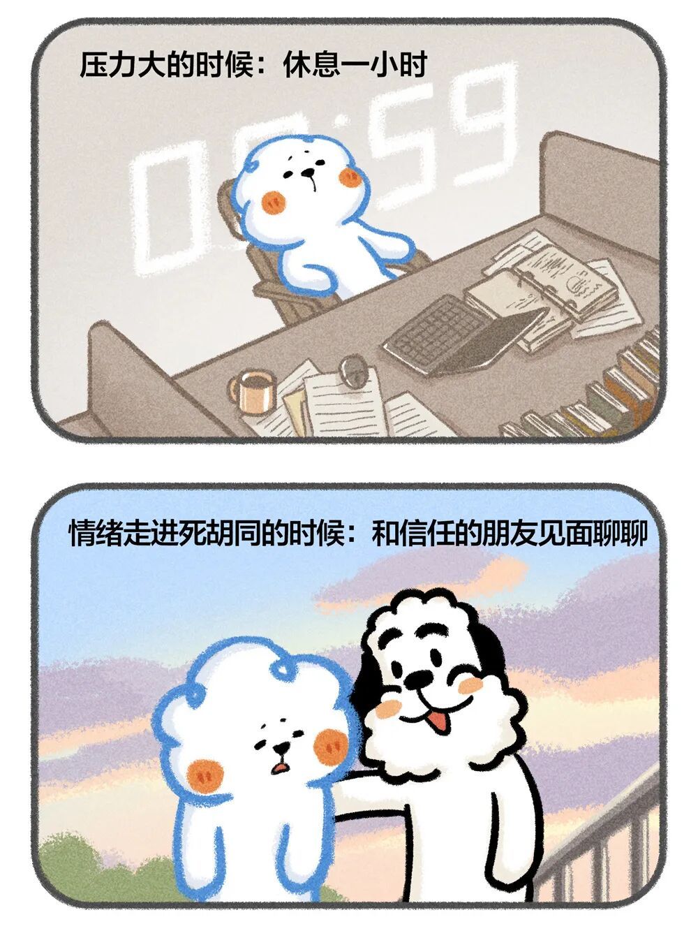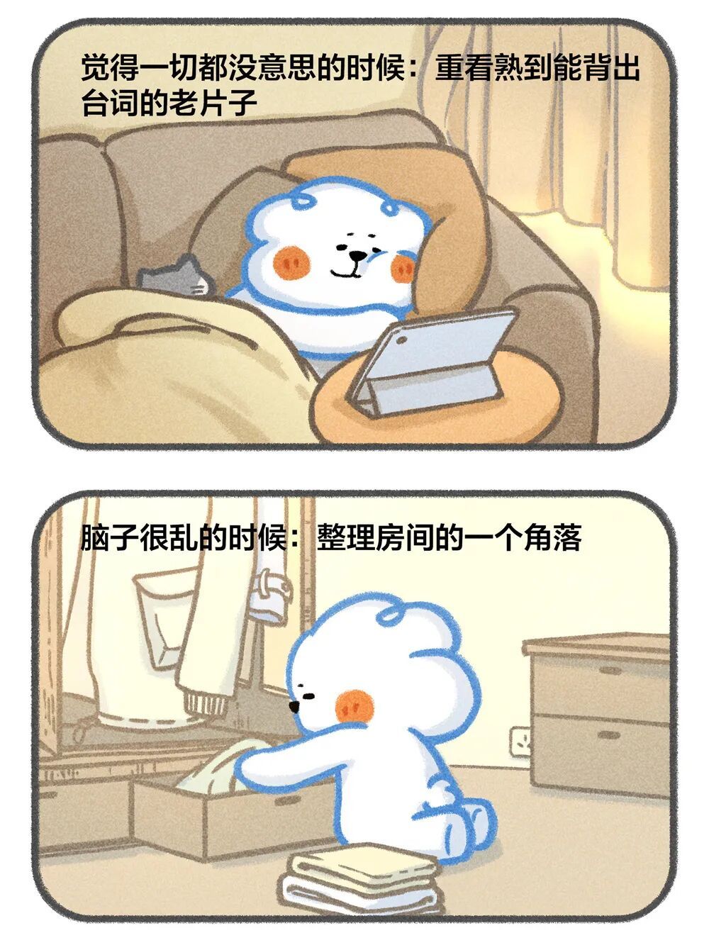 今天《夜读》给大家分享一些简单的情绪解药,一些沮丧时、内耗时、生气时、压力大时可以做的小事。欢迎在 作者@云云狗的治愈漫画里, 给自己来一次精神快充~