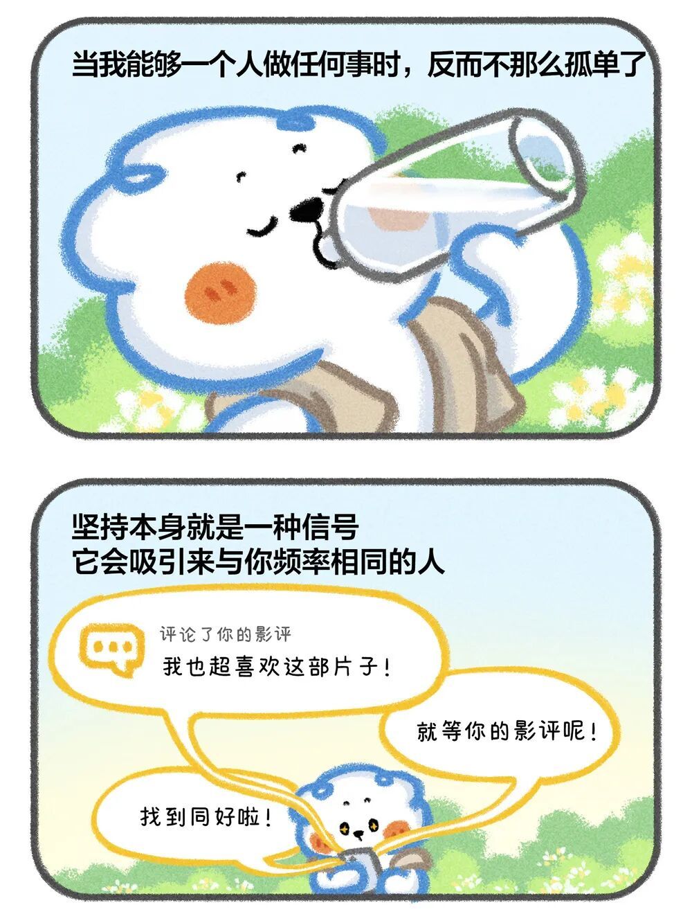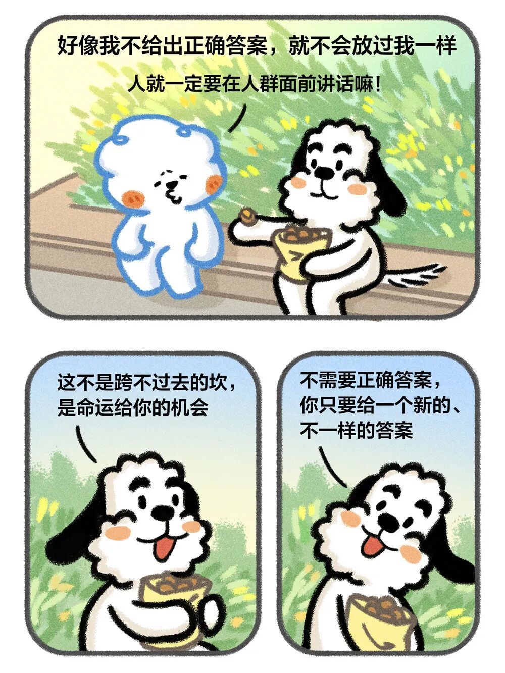 云云狗, 芸芸众生中再平凡不过的一员,希望它的治愈日常能接住你的小情绪,已出版漫画故事集《我会一次次接住自己》等。