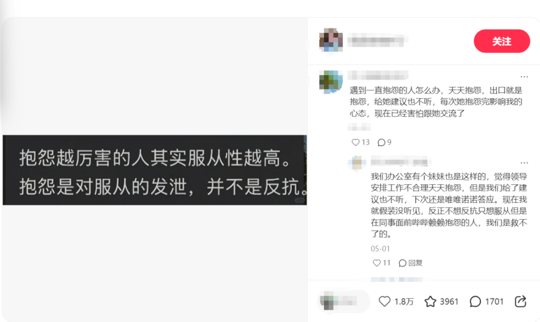 那么,从心理学来说,我们到底该不该抱怨?爱抱怨就代表服从性高吗?