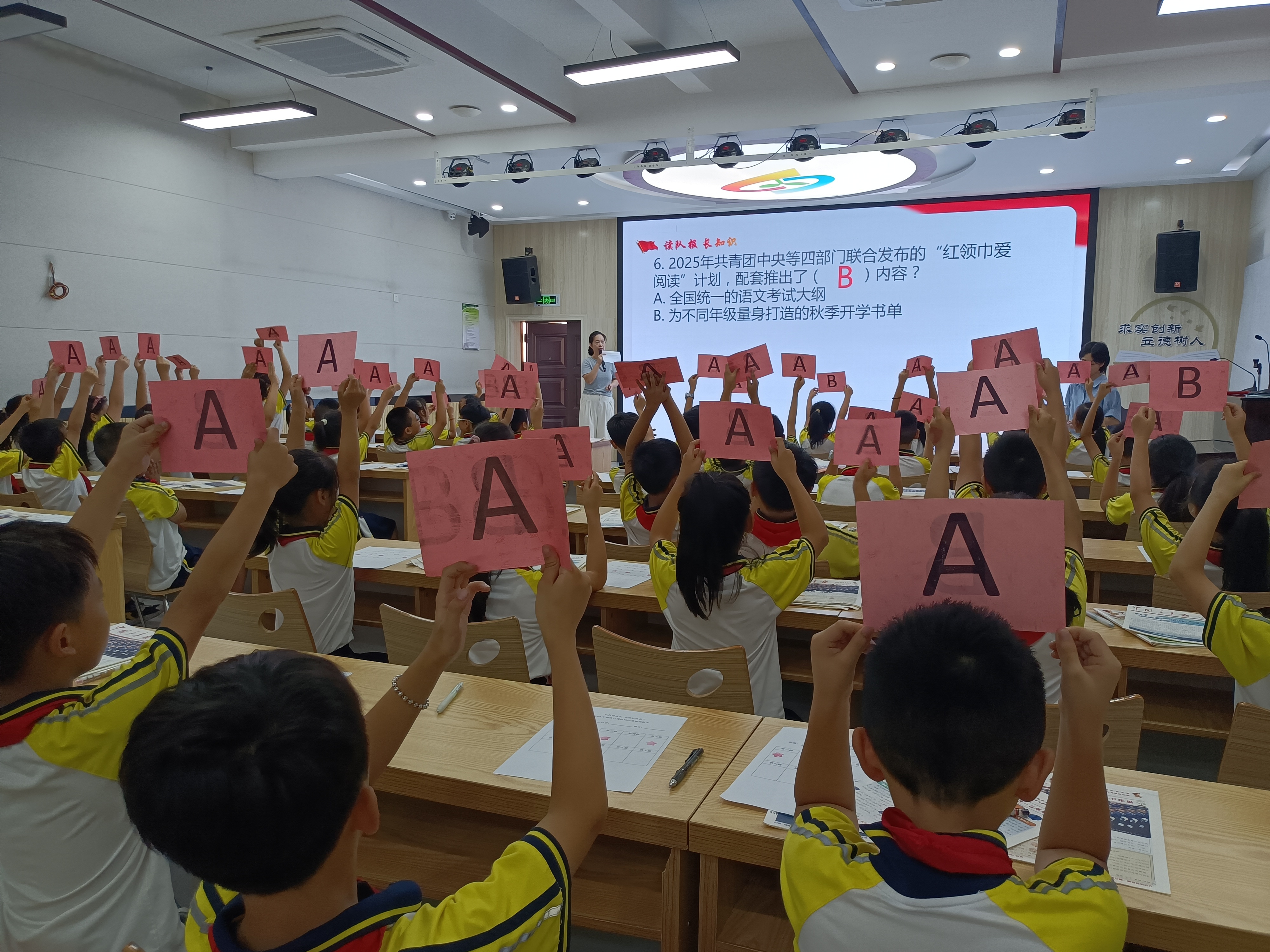 10月10日下午,福建省邵武市实验小学载德楼聚德报告厅里,坐满了各年级的队员们,他们每人都紧紧握着AB卡,握的手心都冒汗啦!原来,这里正在举行“队报伴成长,争做好队员——2025年队报知识竞赛”活动。活动旨在激发队员们阅读队报的热情,增强组织归属感与时代使命感。