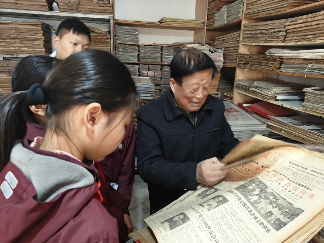在刘大亮爷爷的讲述中,队员们对刘爷爷20多年来收藏20多万份老报纸的故事有了初步的认识。一张张泛黄的报纸,不仅是时代的见证,更承载着一位老党员的赤诚情怀。通过了解收藏背后的故事,队员们深知每一份报纸的留存都凝聚着坚守与付出,深刻体会到刘大亮先生无私奉献的党员品格,更读懂了老物件背后沉甸甸的时代价值——那是对民主理想的执着追求,是对家国情怀的深情守望。