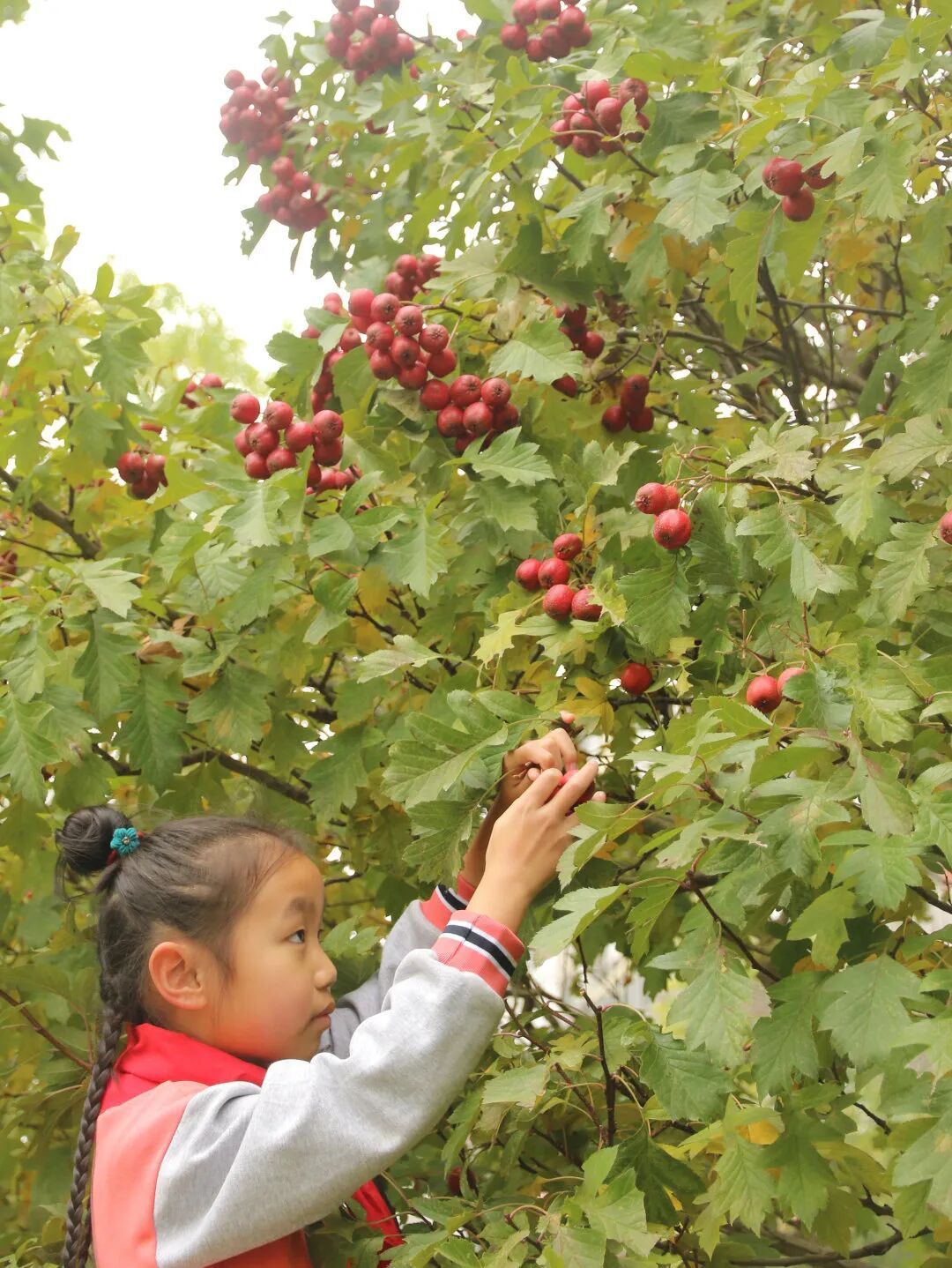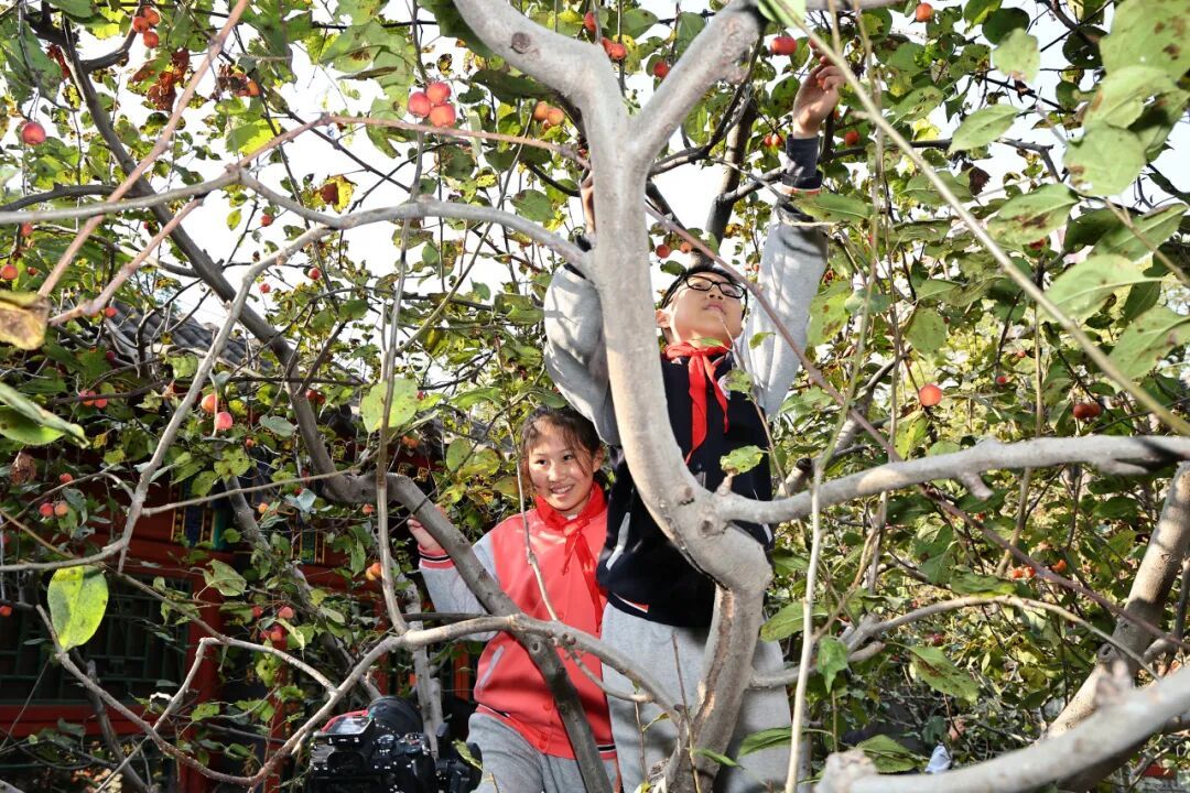 10月28日至29日,南北校区的党团队员代表在科学老师的指导下,开展了校园果实采摘活动。采摘前,科学老师为同学们讲解了果树的生长规律与采摘技巧,让大家在动手之前先“知其所以然”。随后,大家一同采摘了校园中熟透的石榴、红艳的海棠和饱满的山楂。