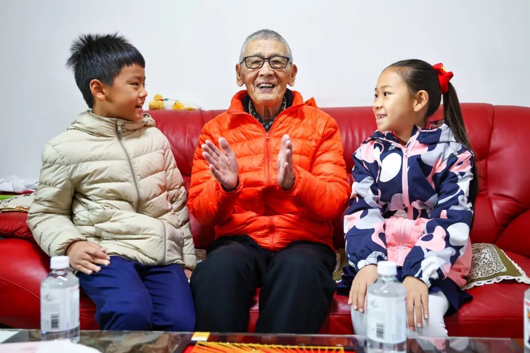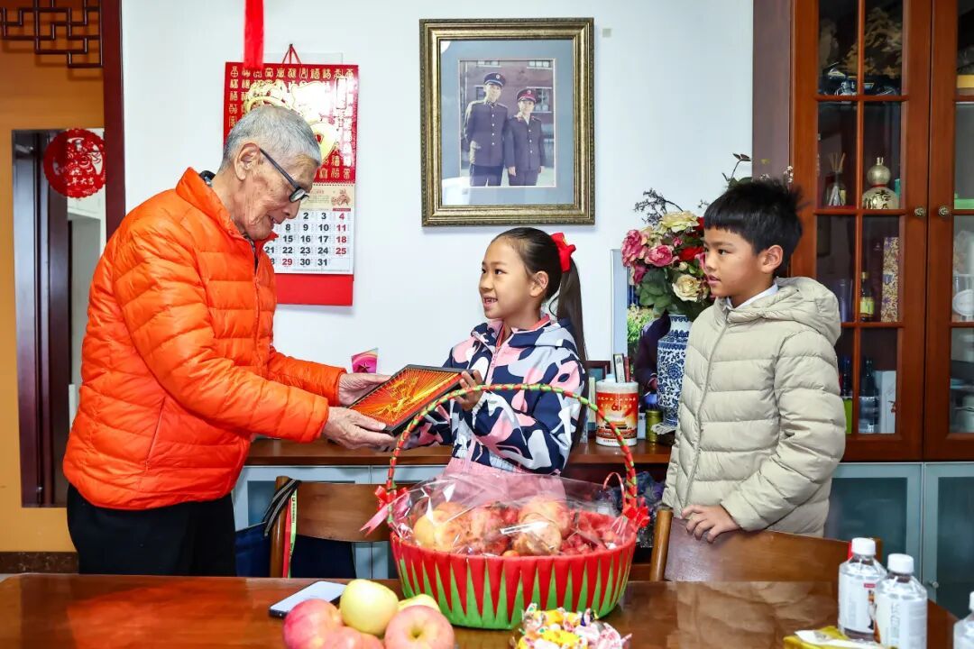 采摘结束后,同学们将果实精心整理、称重、打包,制作成一份份满载心意的“感恩果包”,赠送给曾在开学典礼上为同学们讲述革命故事的抗战老战士储渭爷爷。这一举动不仅延续了开学第一课的红色教育,更在劳动中传递了“劳动光荣、感恩奉献”的价值观。